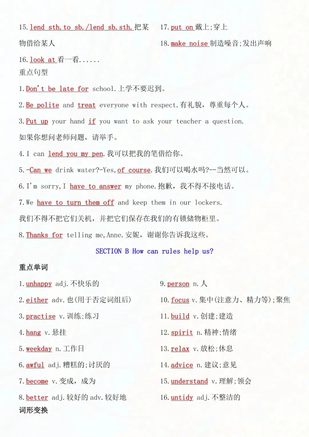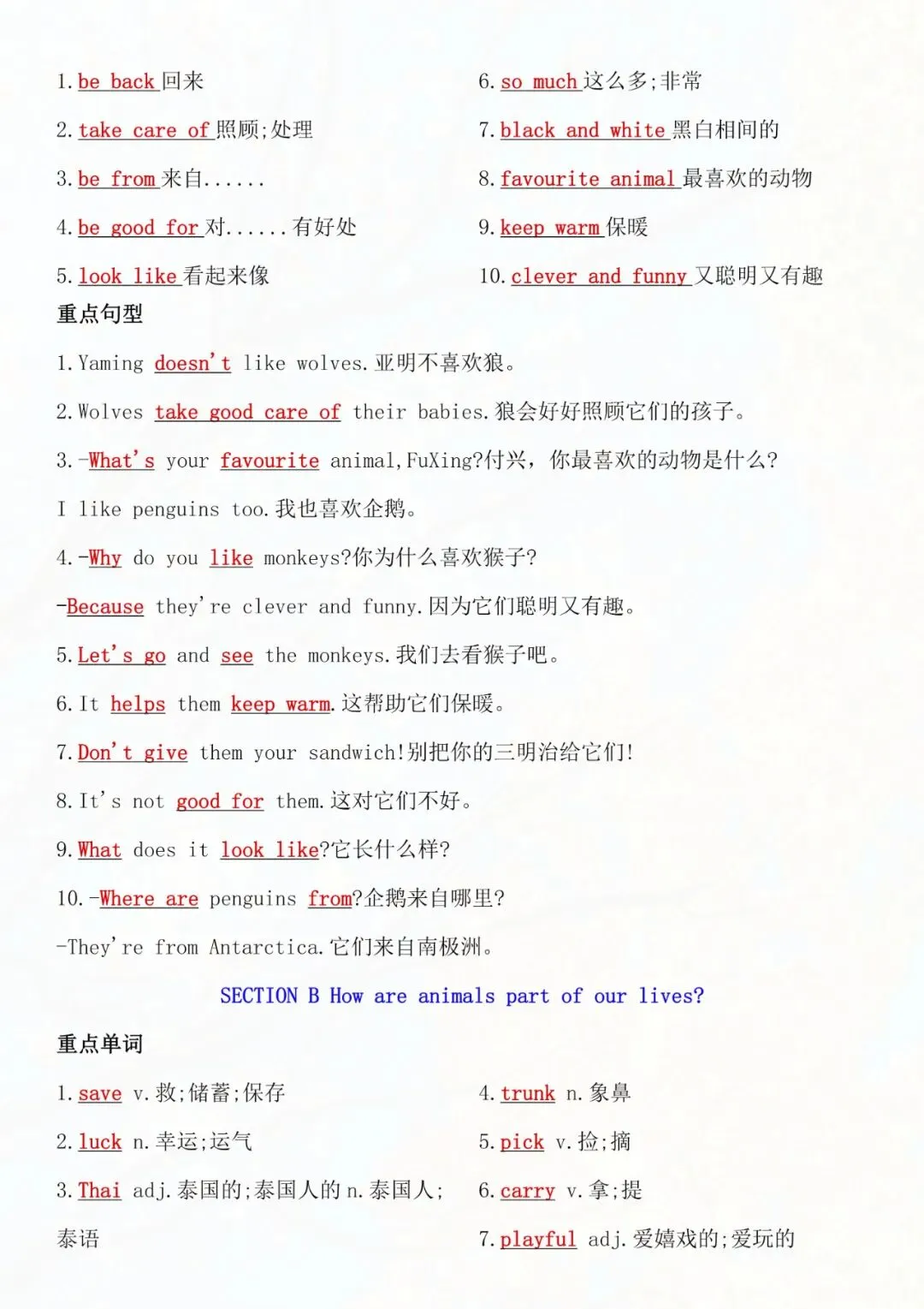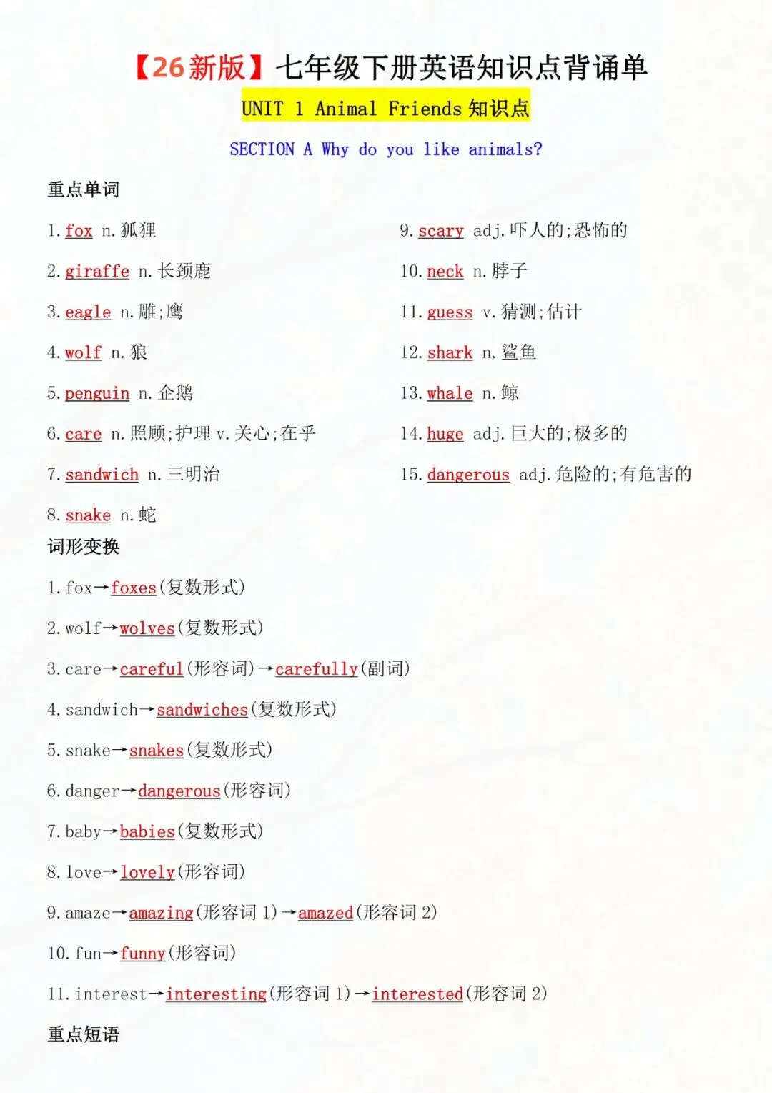 今天老师给大家整理了:七年级下册英语全册知识点背诵单电子版可打印!