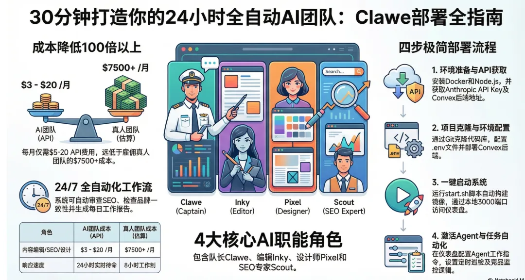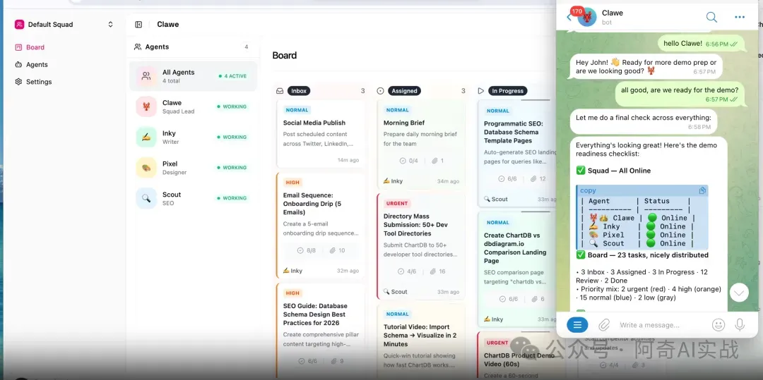 部署一套24 小时自动工作的 AI 团队,帮你: