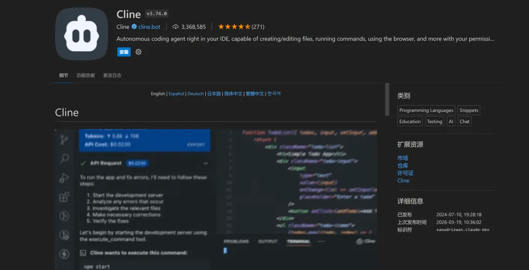 1. Cline(AI编码代理天花板)