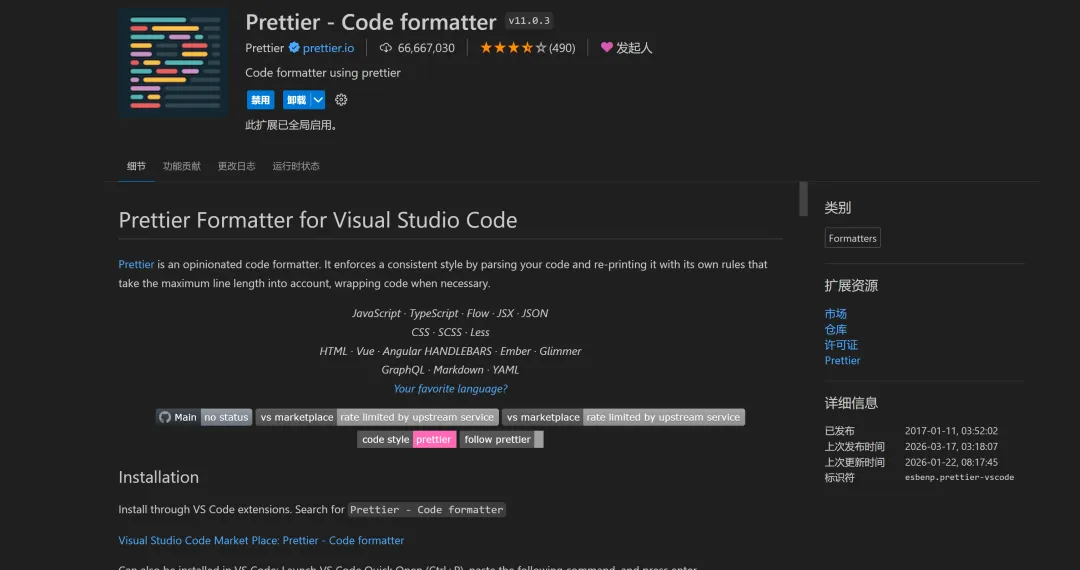 核心优势:自动格式化、多语言支持、保存即格式化、团队风格统一。