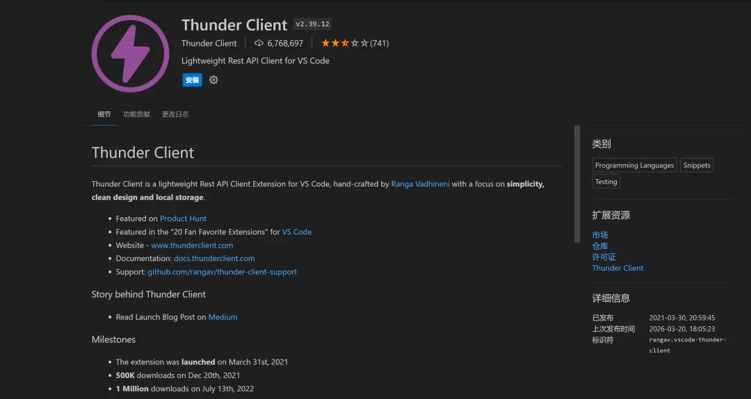 5. Thunder Client(轻量Postman平替)