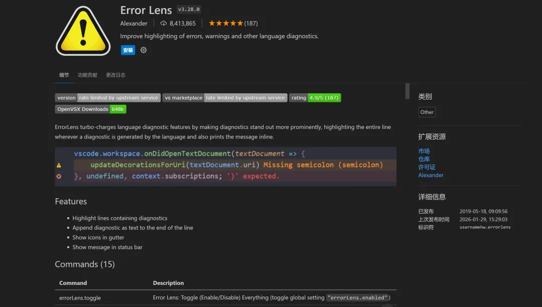 7. Error Lens(错误直出神器)