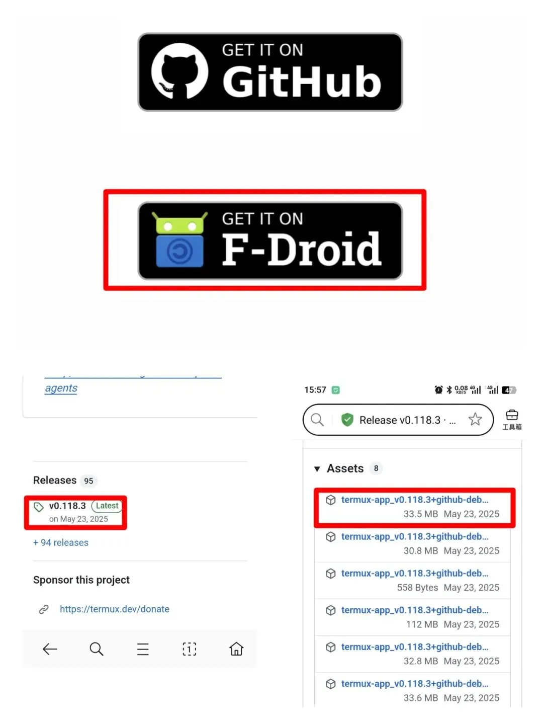 手机或电脑打开官网 https://termux.dev/cn,选择 F-Droid 版本。