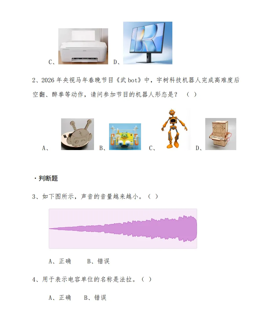 2.得分构成:根据各专项任务的完成度、时间、精度、创新性等维度,由裁判组依据评分细则进行打分,其中,客观题答题满分30分。