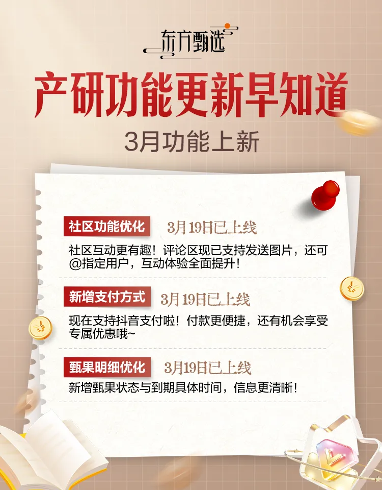 🎈2026年3月东方甄选APP已上线的产研功能,赶紧来看看!