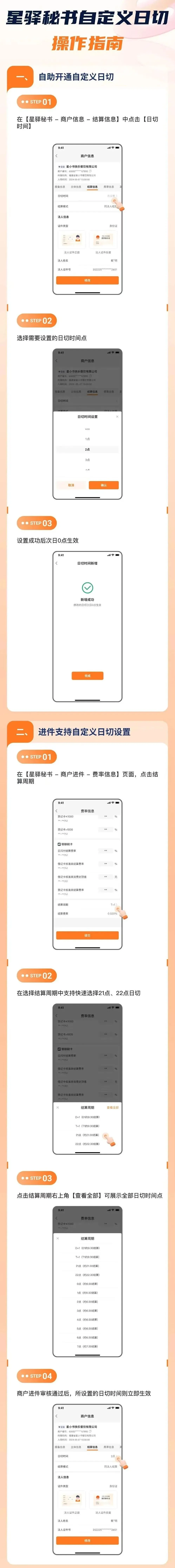 星驿秘书app自定义日切(修改商家到账时间)操作指南
