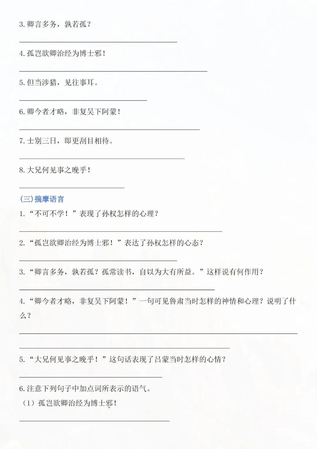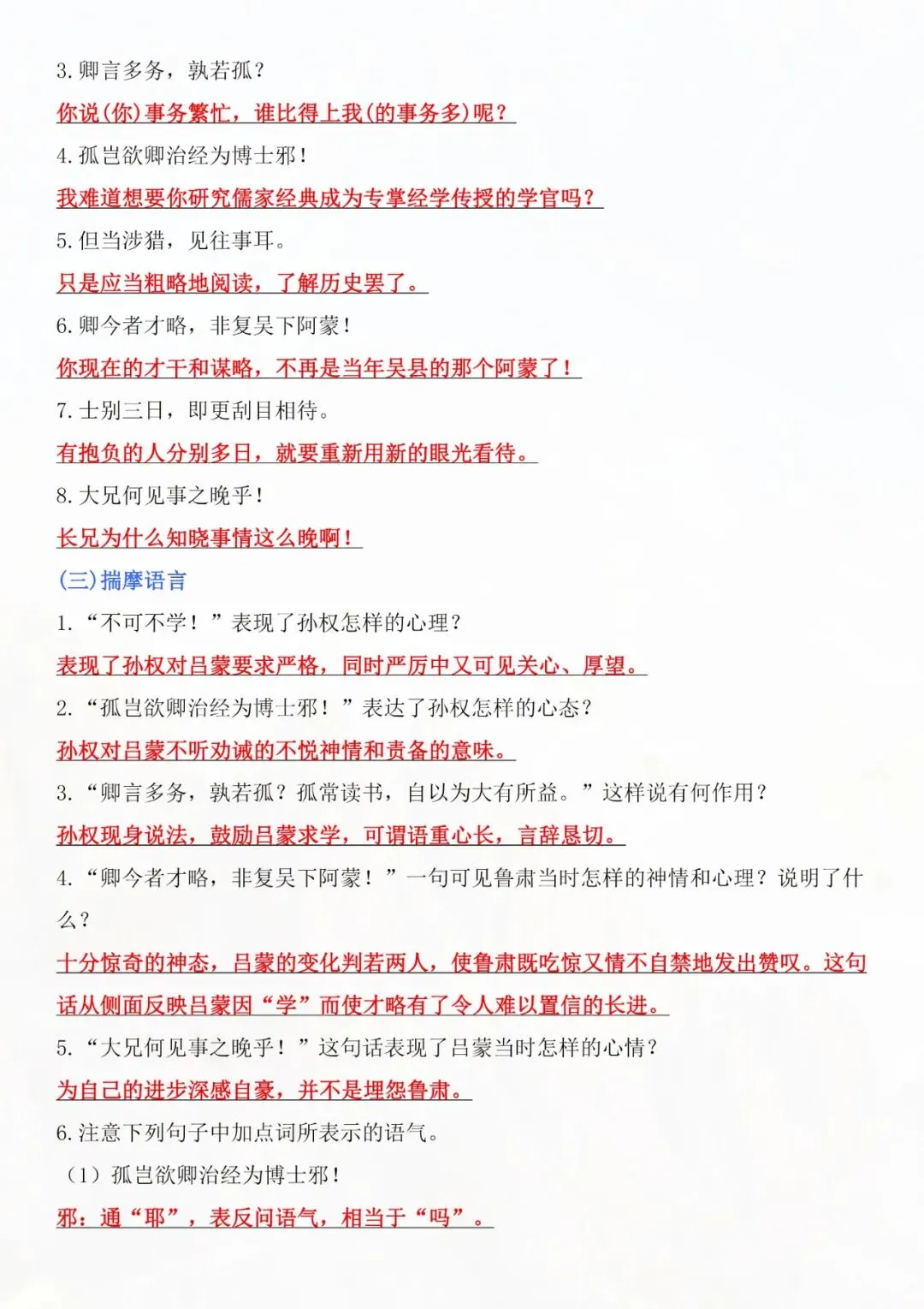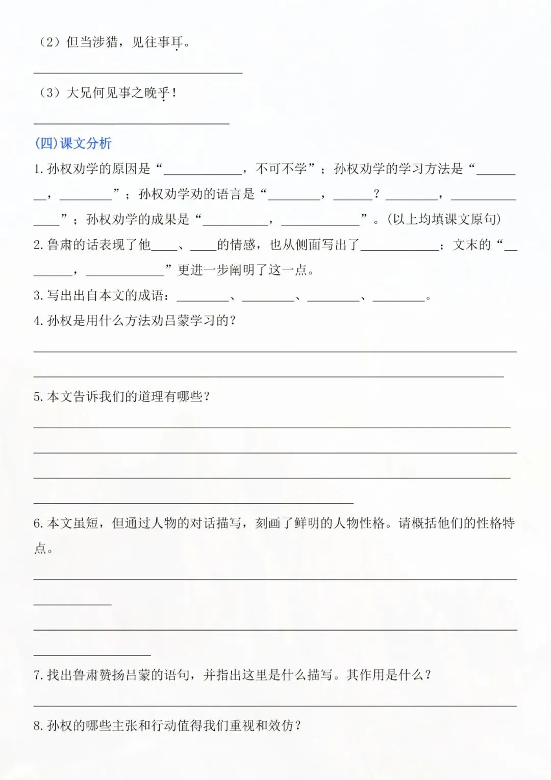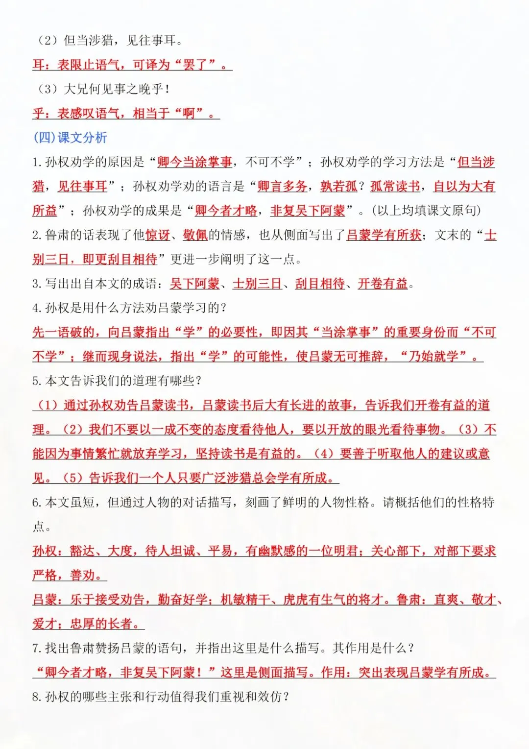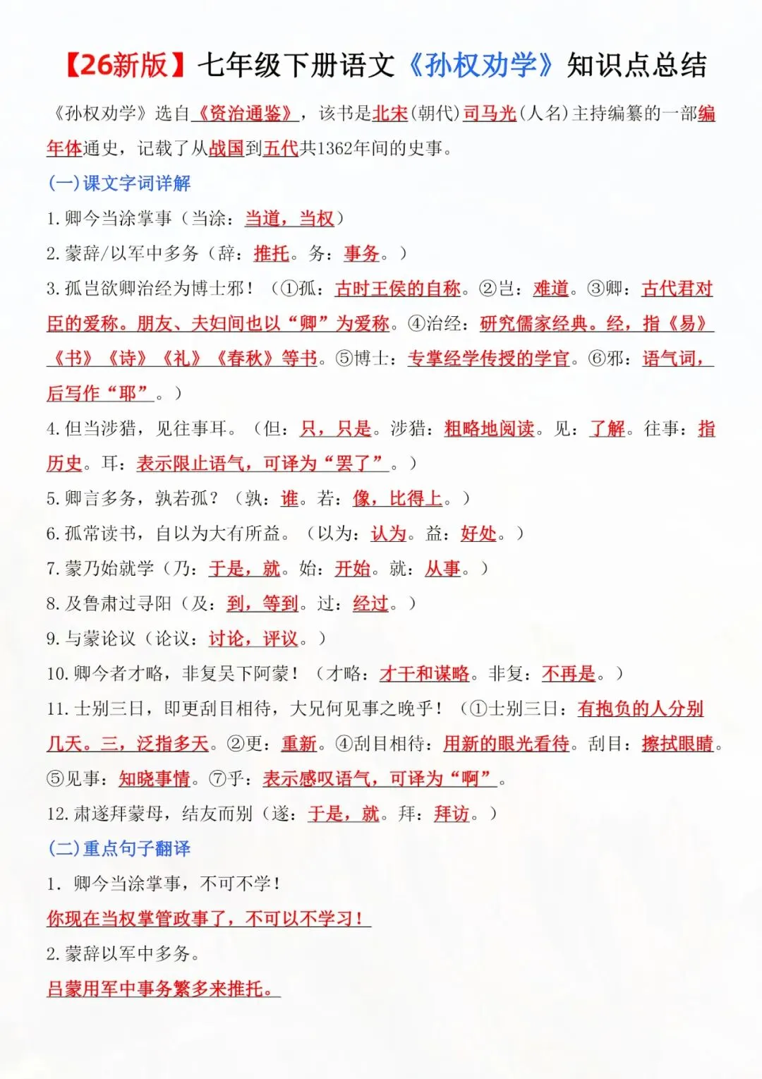 今天老师为大家整理好了:七年级下册语文孙权劝学知识点总结电子版可打印