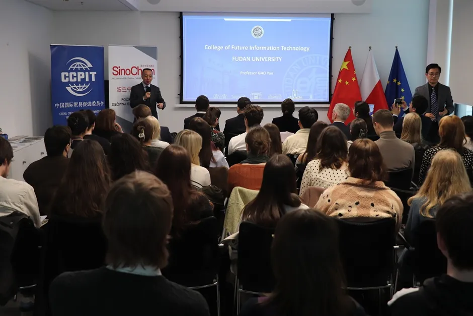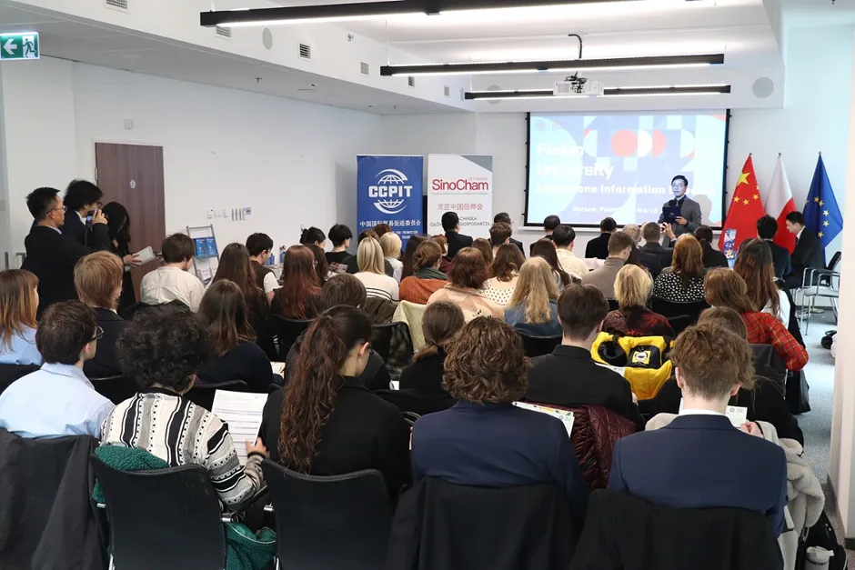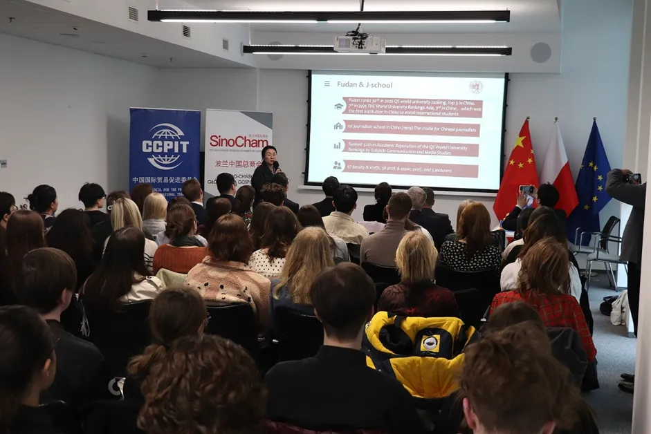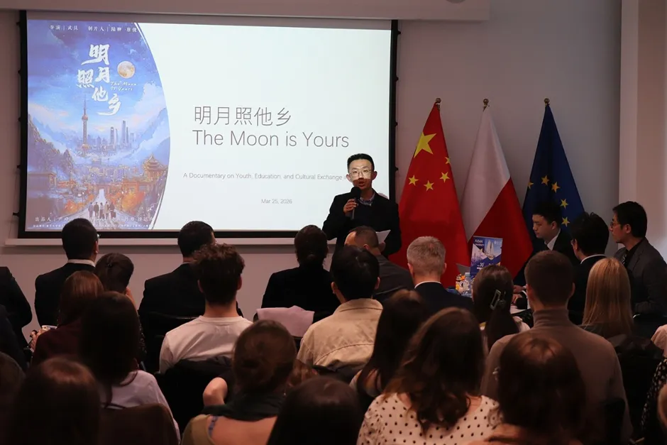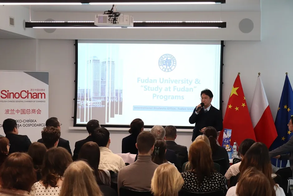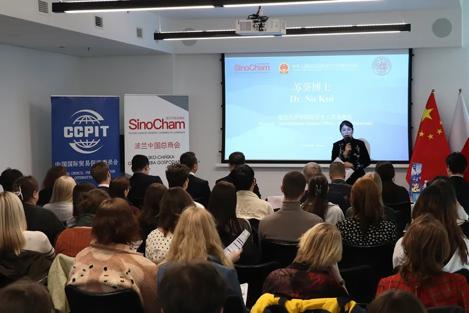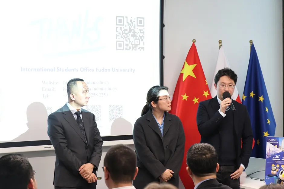 2026年3月25日,在中国驻波兰大使馆的大力支持下,由复旦大学主办、波兰中国总商会协办的“留学复旦”波兰华沙招生宣讲会暨来华留学电影《明月照他乡》展映活动在华沙圆满落幕。来自华沙大学汉学系、华沙人文社科大学、考明斯基大学、玛丽居里夫人大学的60余名师生代表参会交流,现场气氛热烈、反响良好。
