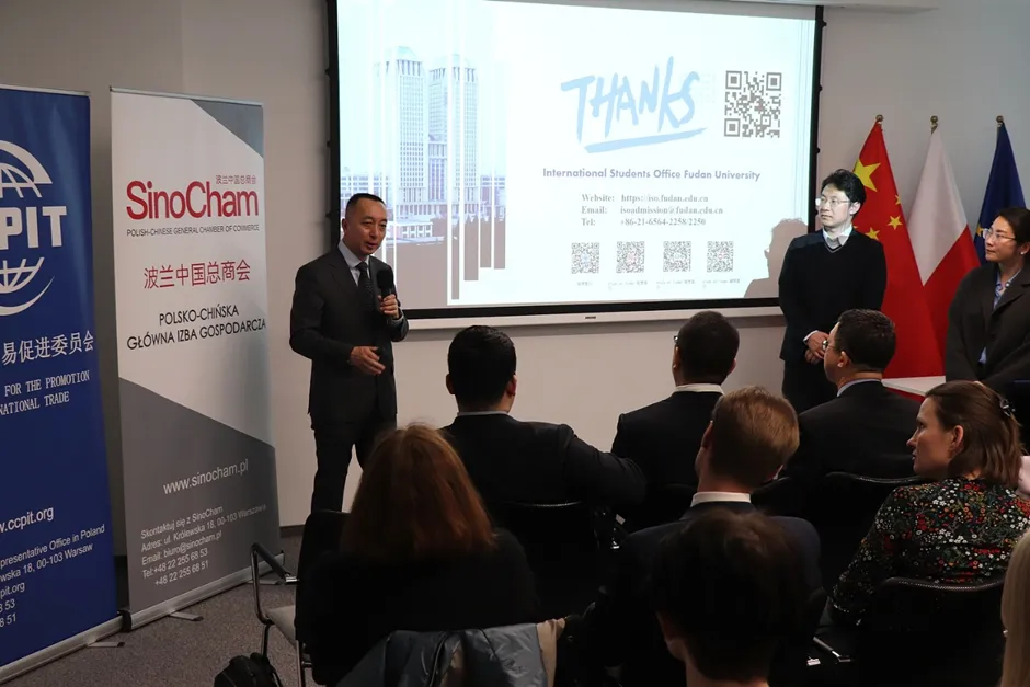 波兰中国总商会秘书长、中国贸促会驻波兰代表处代表王巨鹏对复旦大学代表团和波兰高校的师生表示热烈欢迎,他指出,复旦大学是中国最负盛名的具有国际影响力的高水平学府之一,有着优质的教育资源和广阔的发展平台,这样的交流活动能够帮助更多同学深入了解中国、了解中国高校,从而做出适合自己的学习与职业发展选择。波兰中国总商会也将一如既往发挥桥梁和纽带作用,积极支持中波教育交流合作,为高校与学生之间搭建更多沟通平台,推动双方在更广领域实现互利共赢。