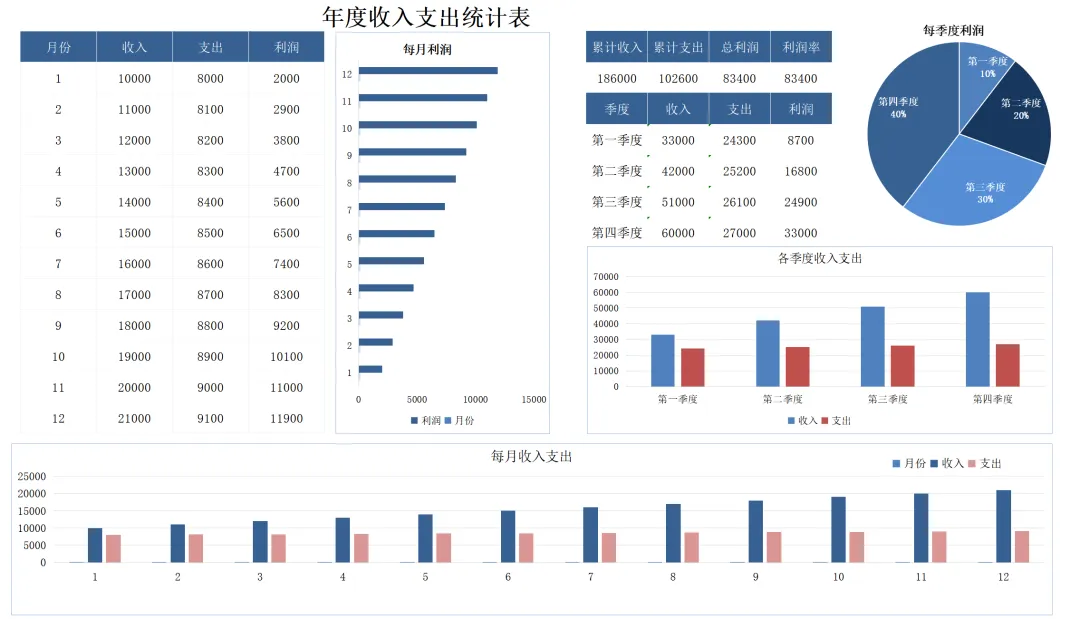 今天分享18套可视化财务报表模板,就是针对这几个高频场景的,汇总表、收支表、利润表、现金流量表等常用报表已经预设好公式,数据源录入后自动汇总生成,再也不用反复复制粘贴。格式统一规范,打印出来版式整齐,可以直接做工作汇报使用,模板结构稳定,每月替换数据即可复用,省去重复调整的时间。直接套用,财务人真的少加班!