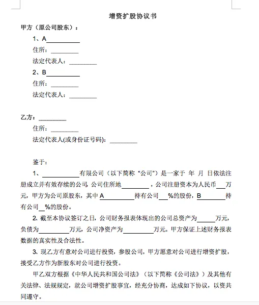 110份资本运作常用资料.Word(增资扩股、股权收购、 并购协议、股权激励)