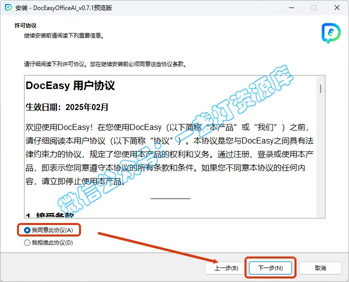 5.勾选【我同意…】,点击【下一步】