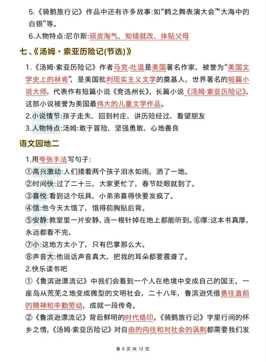 26春最新版六年级下册语文1-6单元《核心常考点知识速记》期中期末复习必背,高清可打印