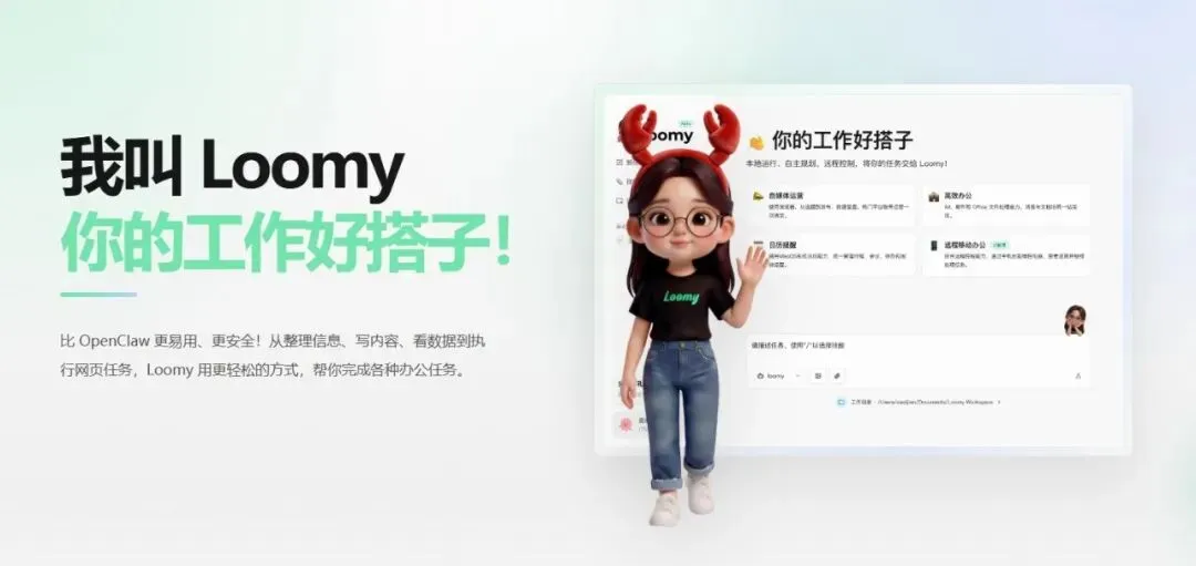 比OpenClaw更易用、更安全!Loomy从整理信息、写内容、看数据到执行网页任务,用更轻松的方式,直接参与实际工作流程,帮你完成各种办公任务。