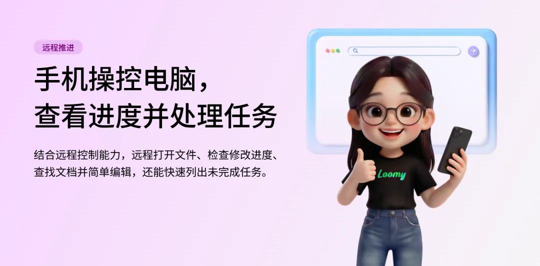 Loomy 会自动在电脑端执行任务,并将生成结果直接推送到手机。站在AI时代,让我们不必被“绑定”在电脑前。