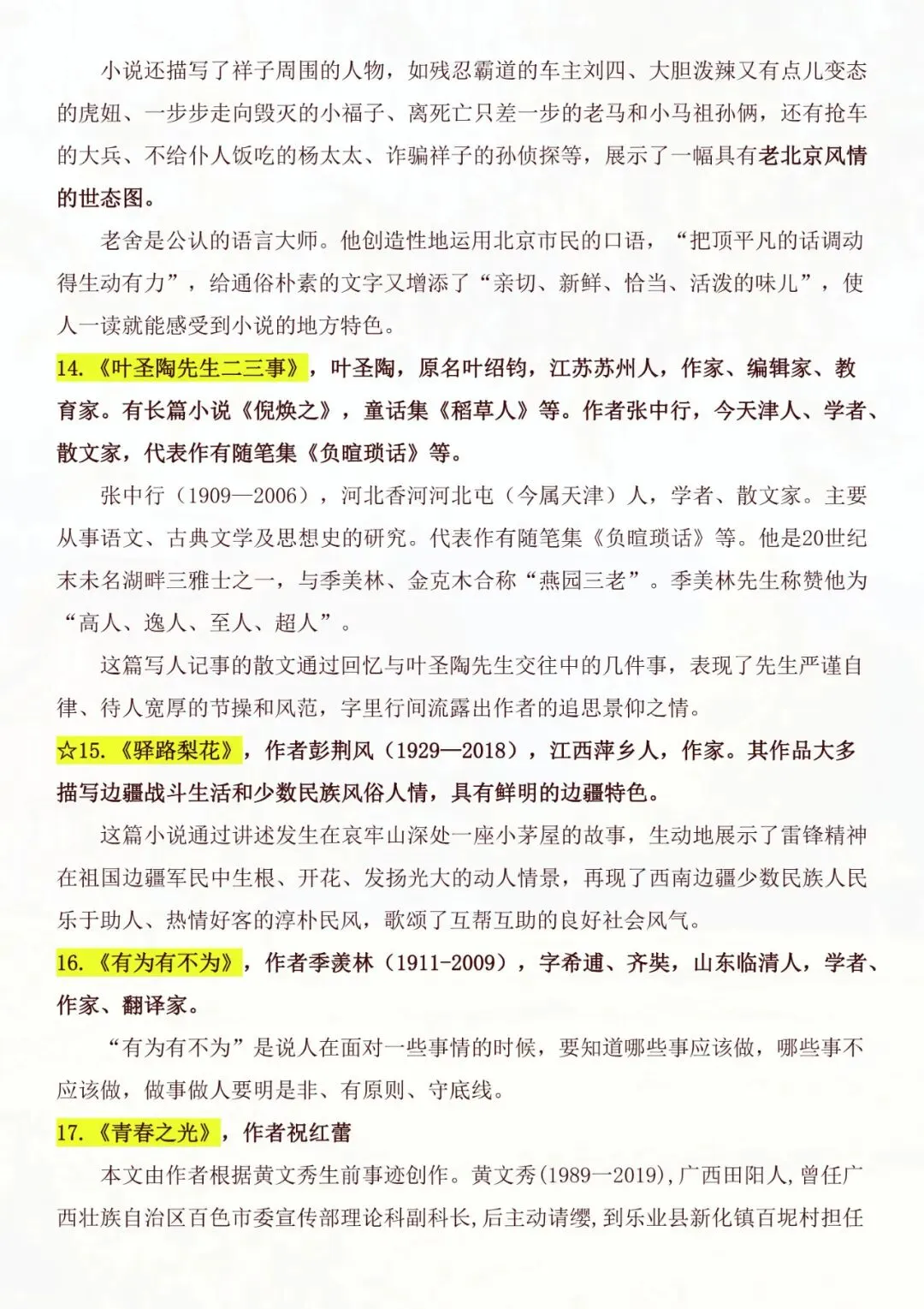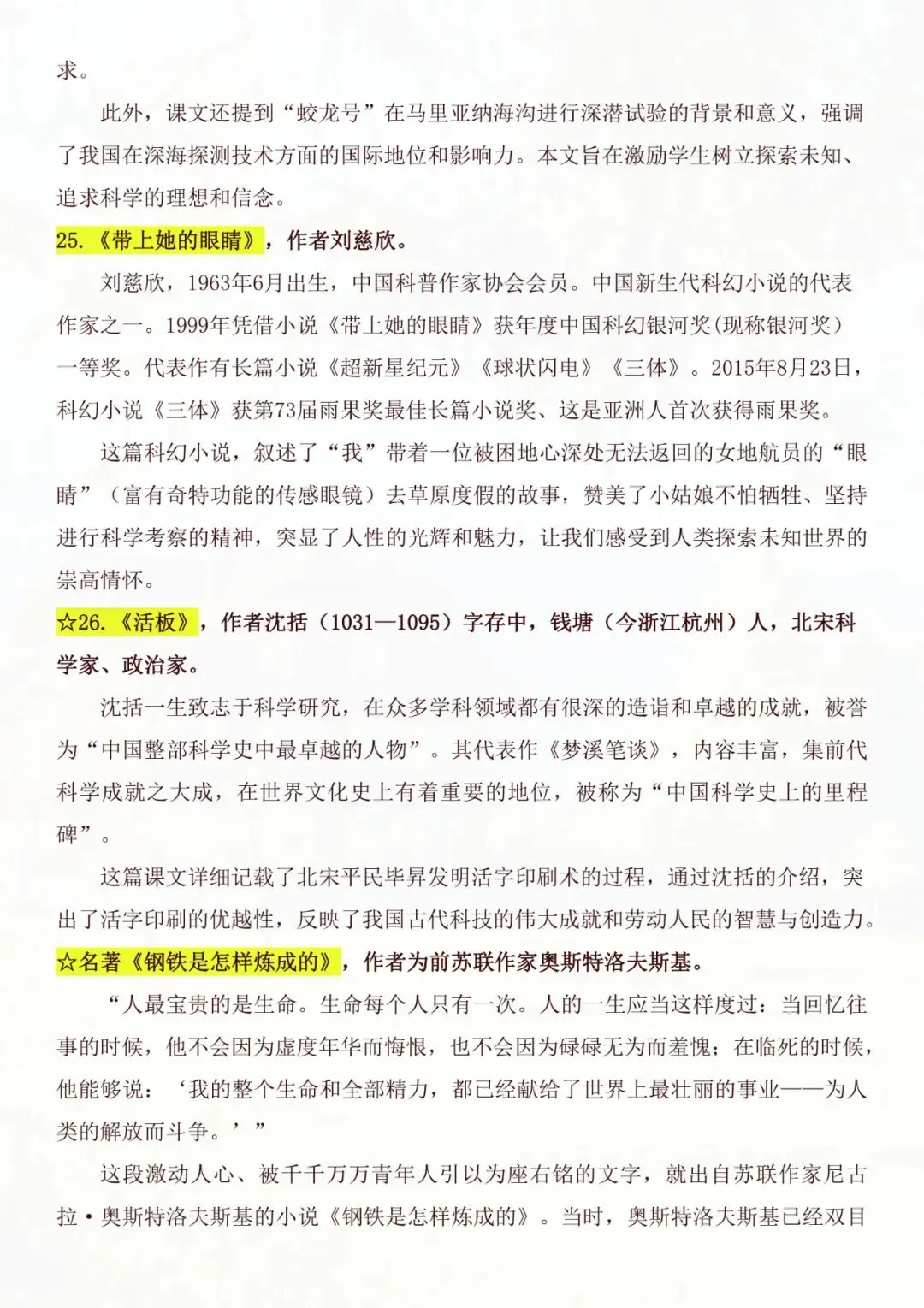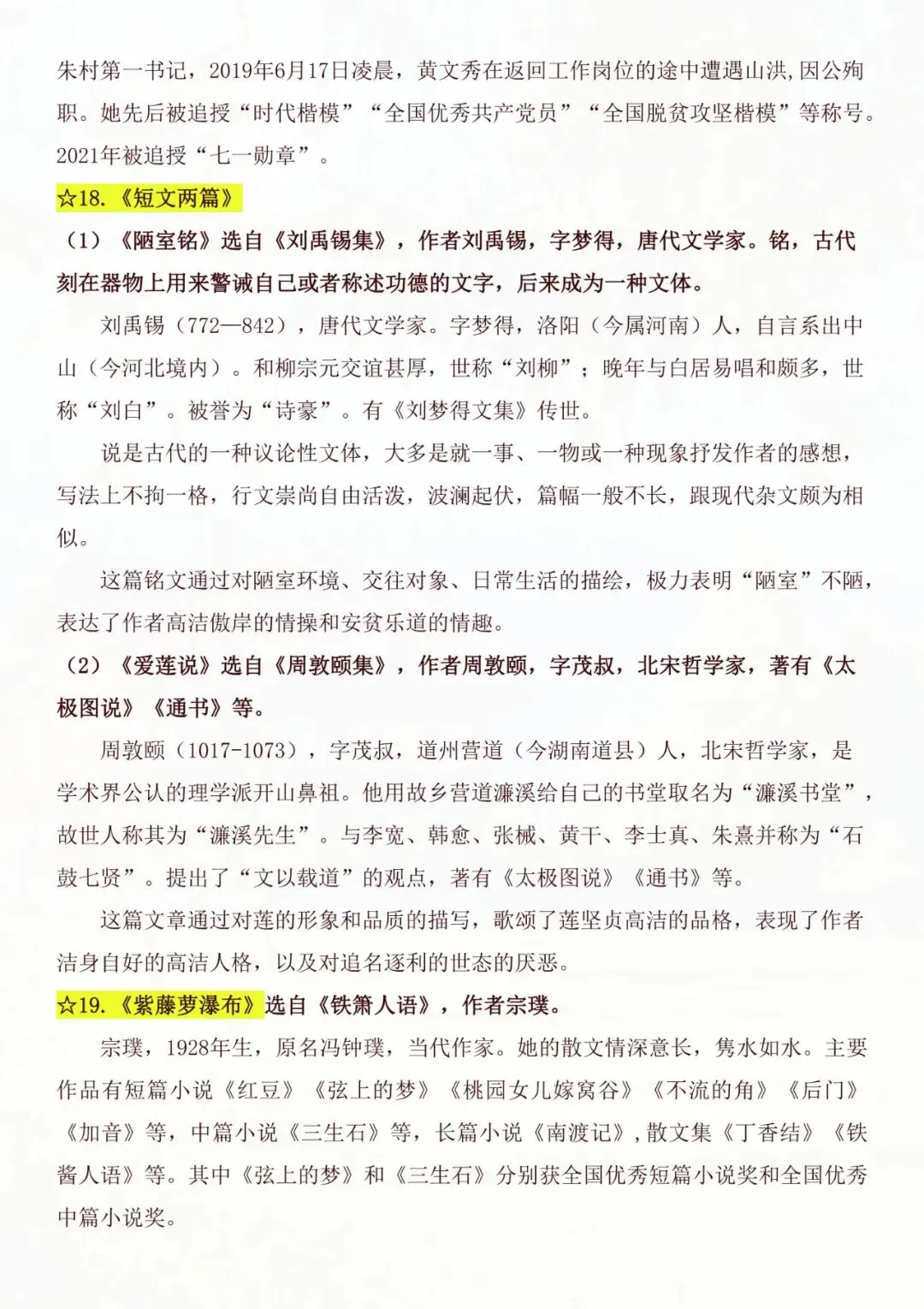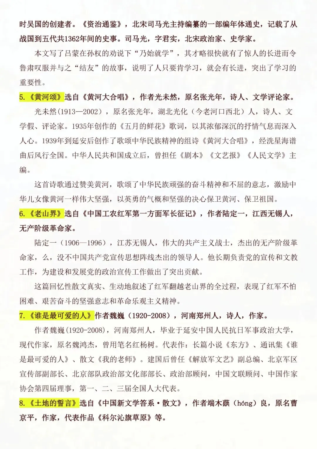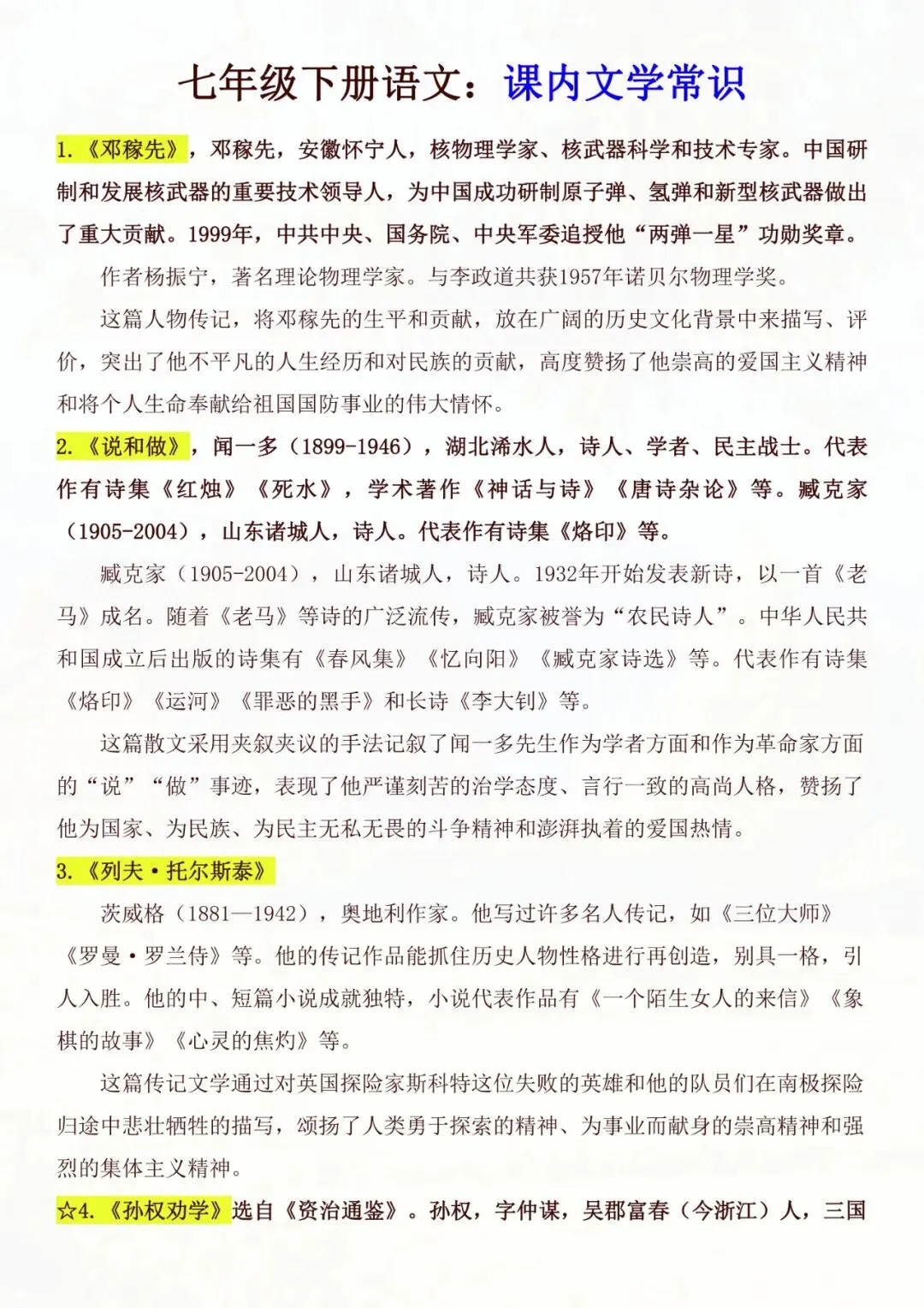 七年级下册语文|课内文学常识知识梳理 电子版可打印