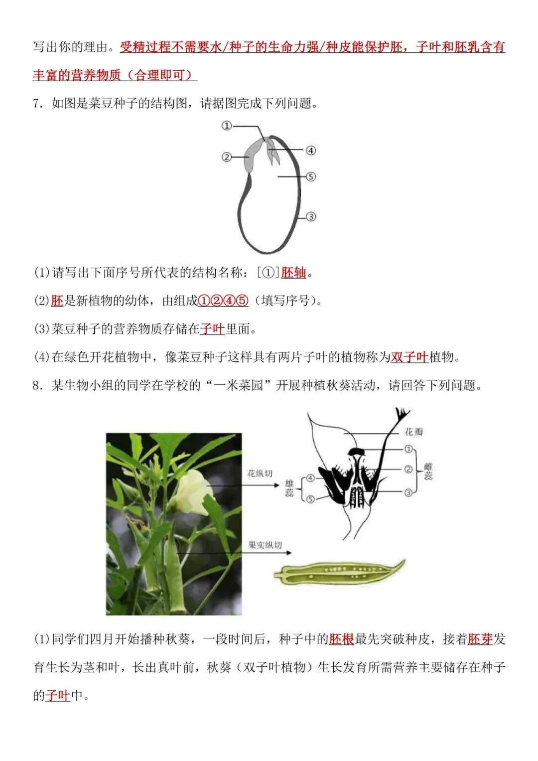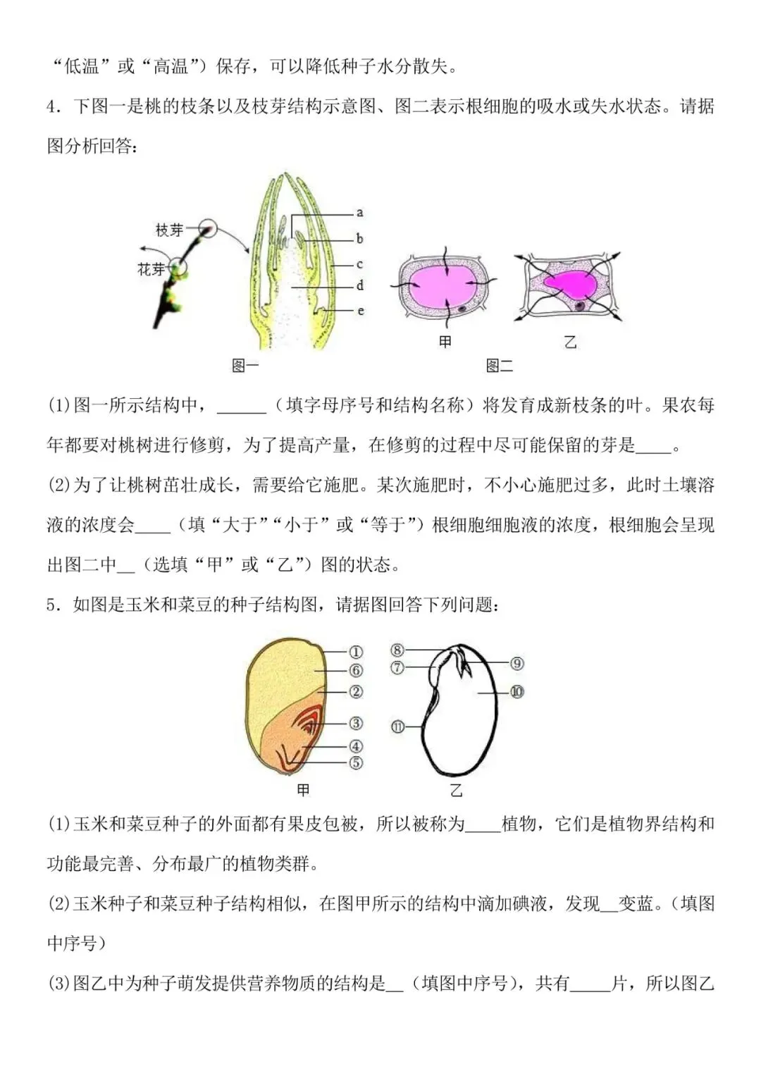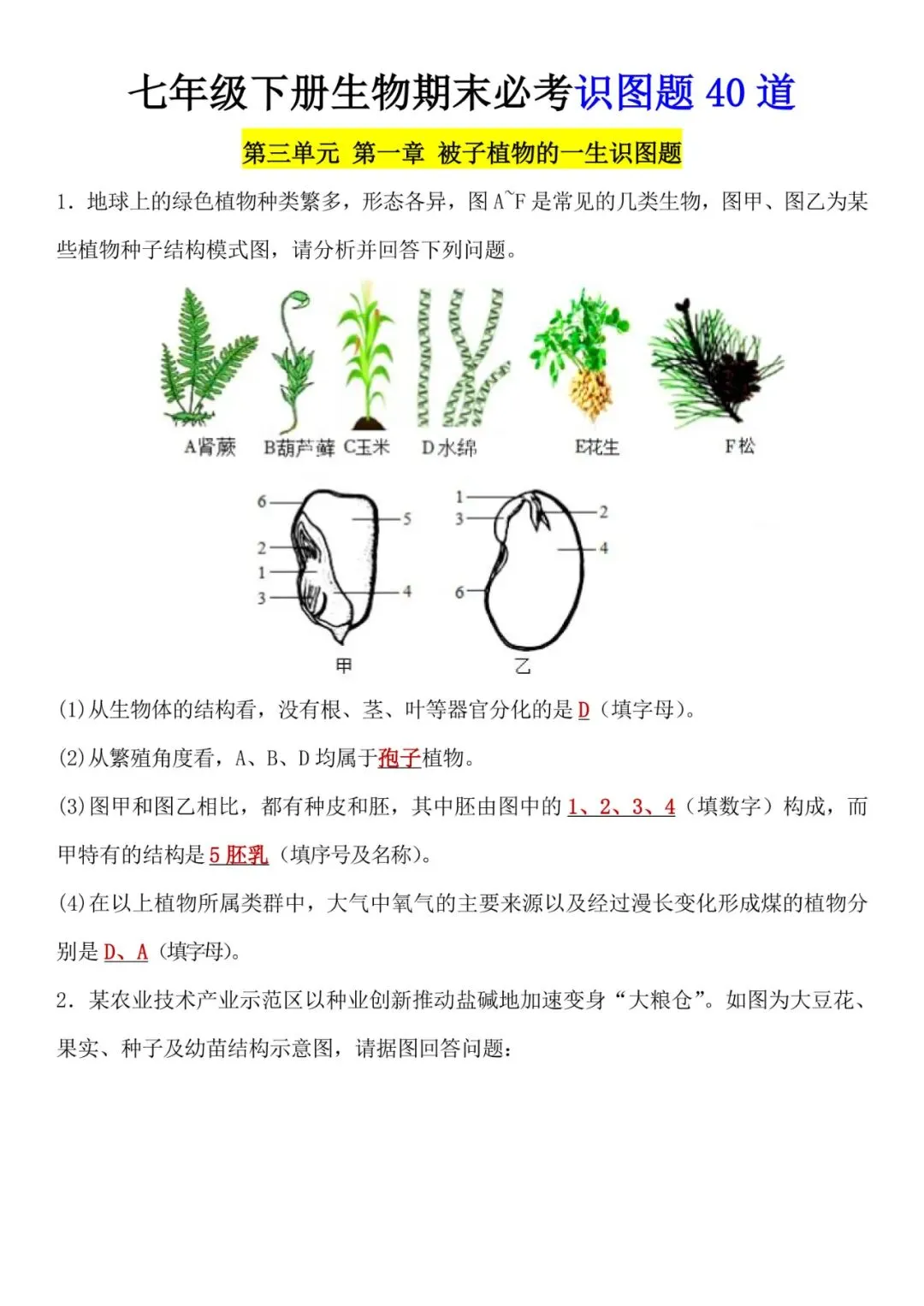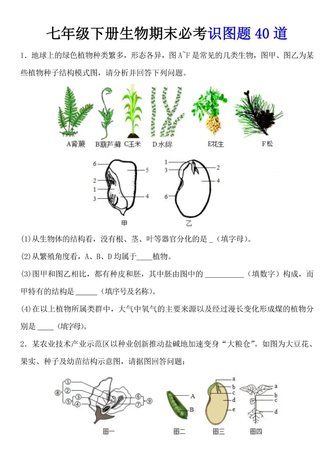 七年级下册生物期末必考识图题 40 道电子版可打印