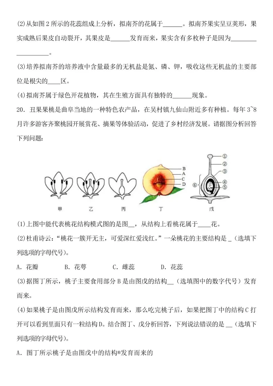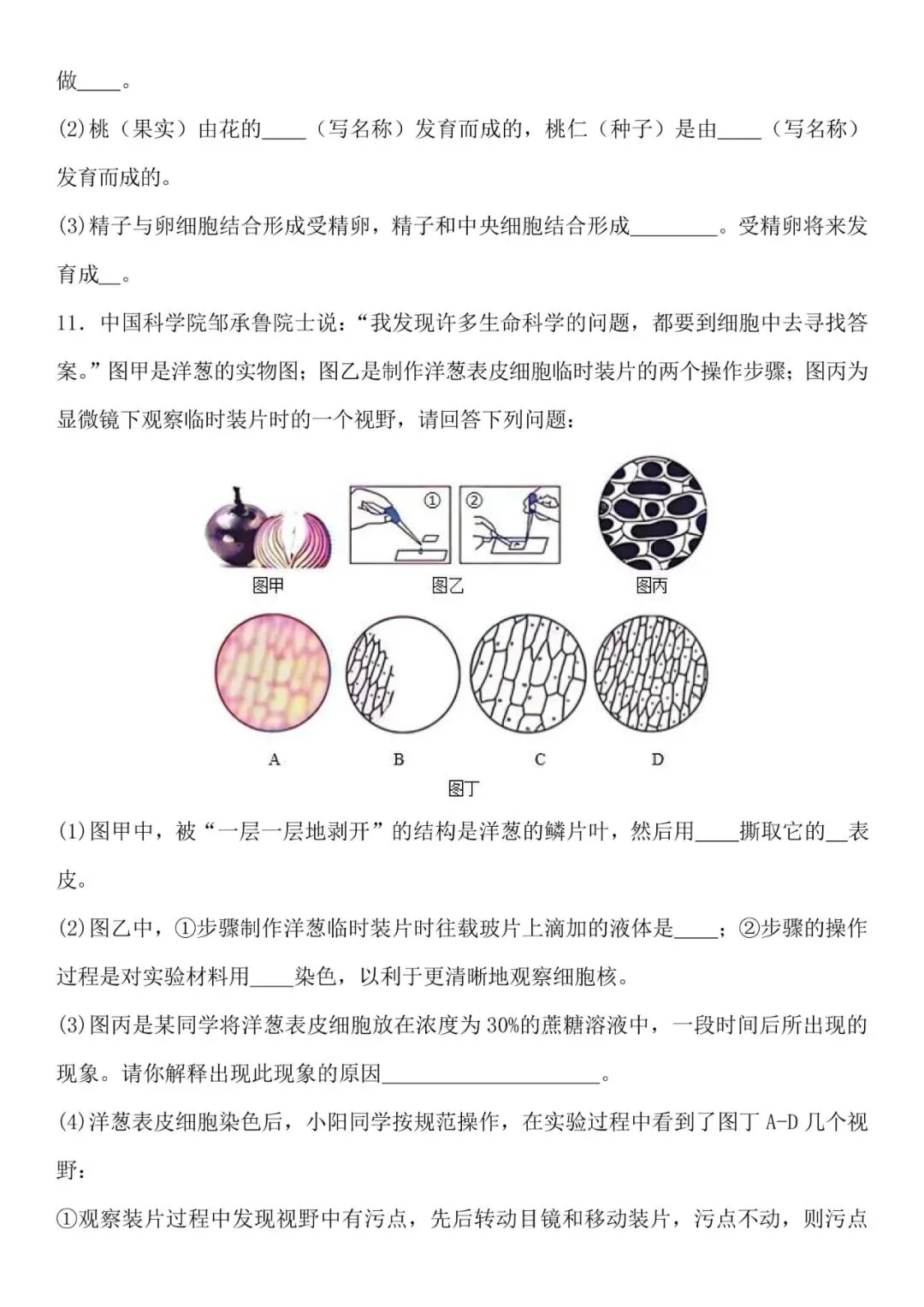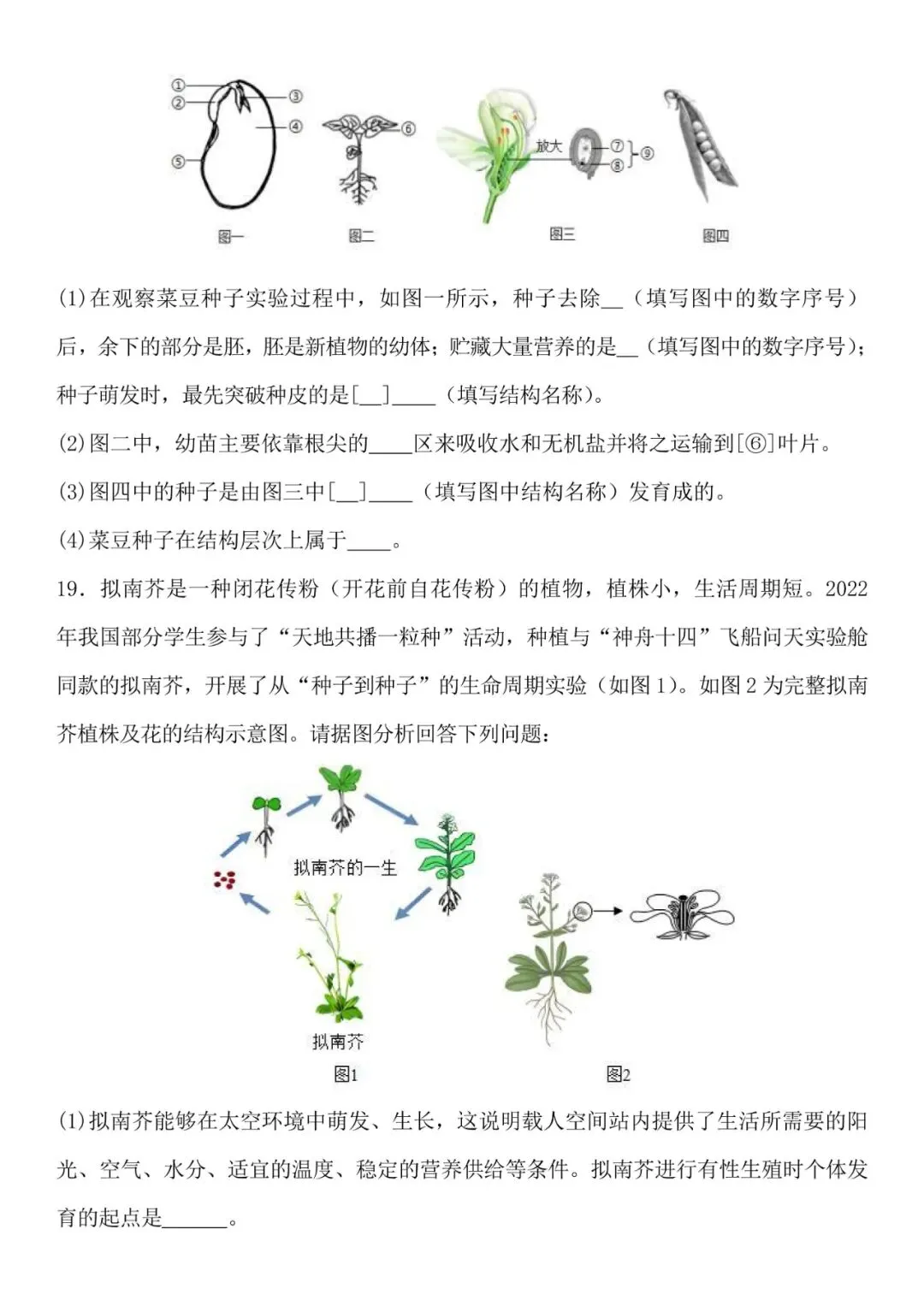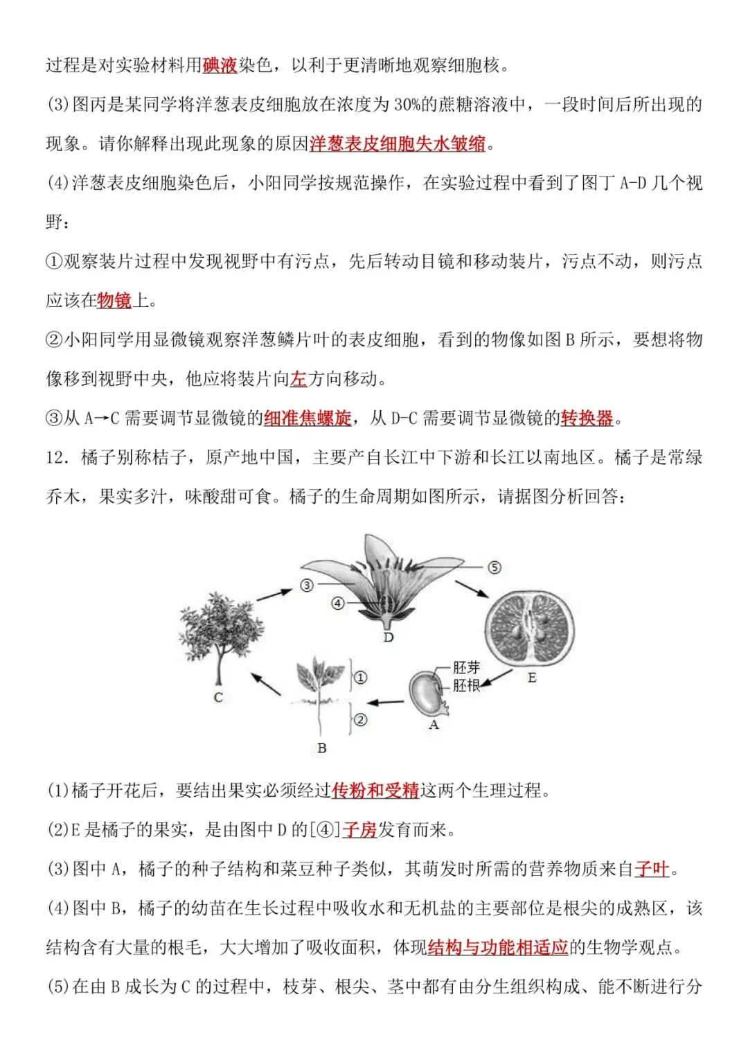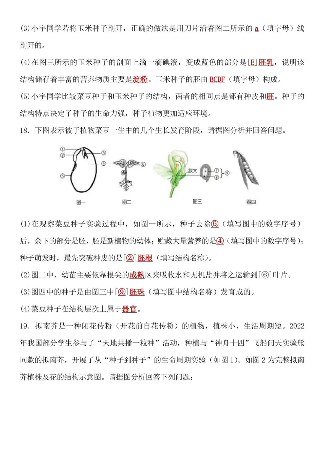 七年级下册生物期末必考识图题 40 道电子版可打印
