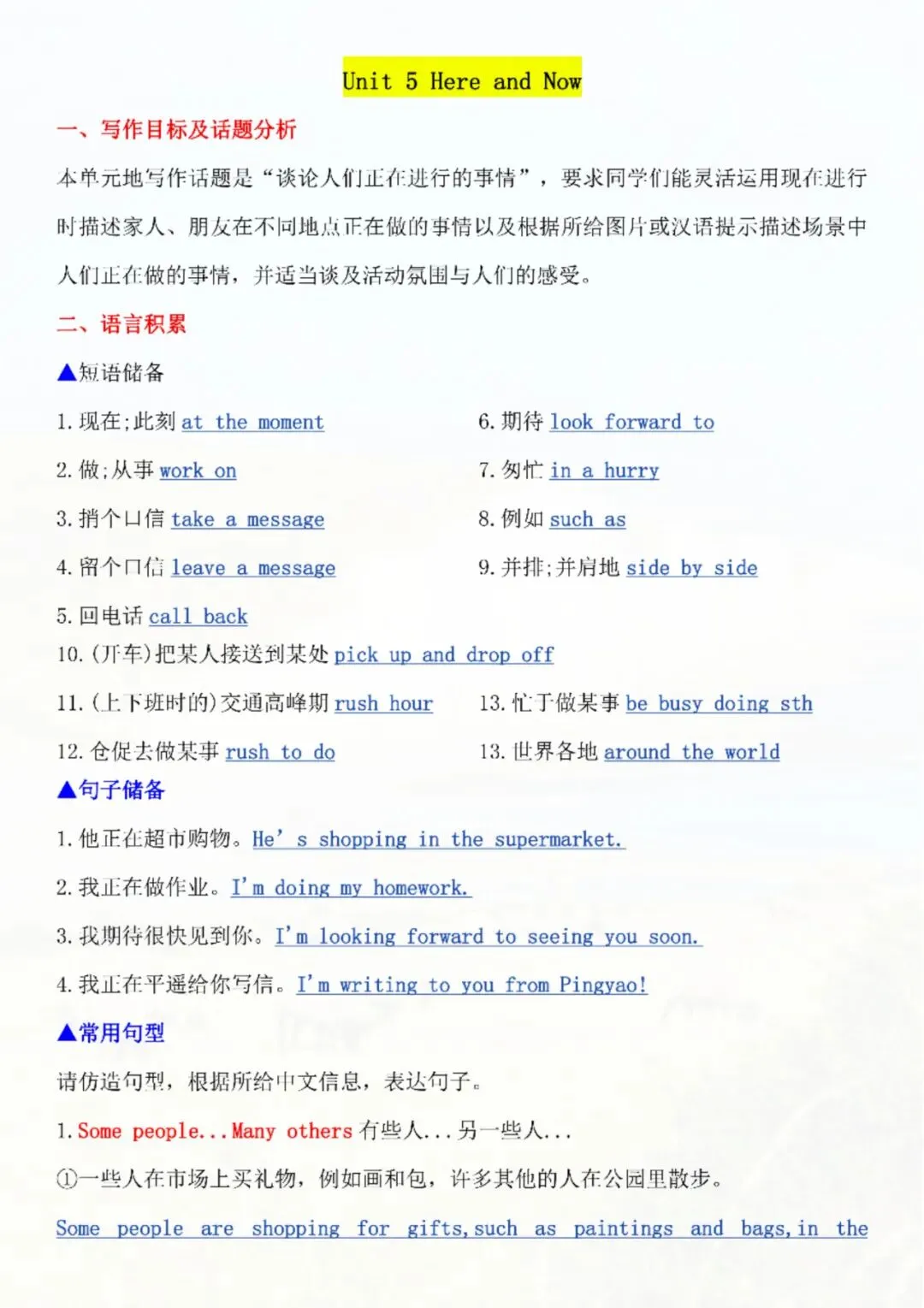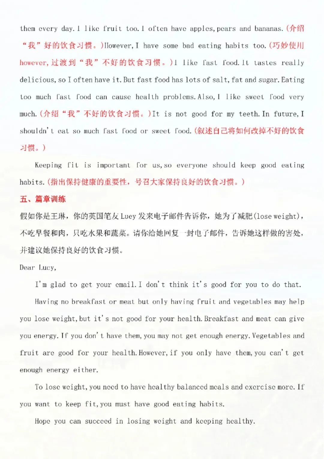七年级下册英语单元作文指导 高分范文 电子版可打印