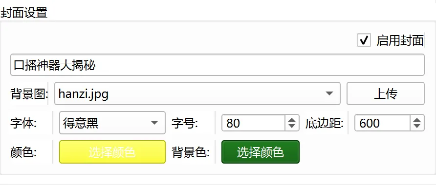 – **生成封面**:工具会根据你的视频标题,和你上传的封面背景图自动生成一张封面图添加到视频中