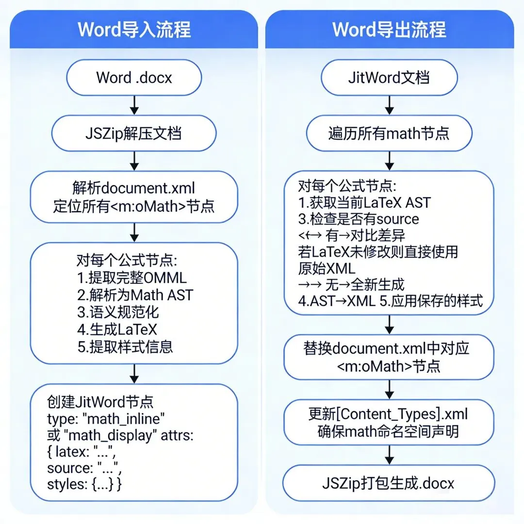 这次我们重点优化了公式兼容性。无论是LaTeX风格的多行公式、矩阵排版,还是带编号的定理环境,现在都能双向无损流转。