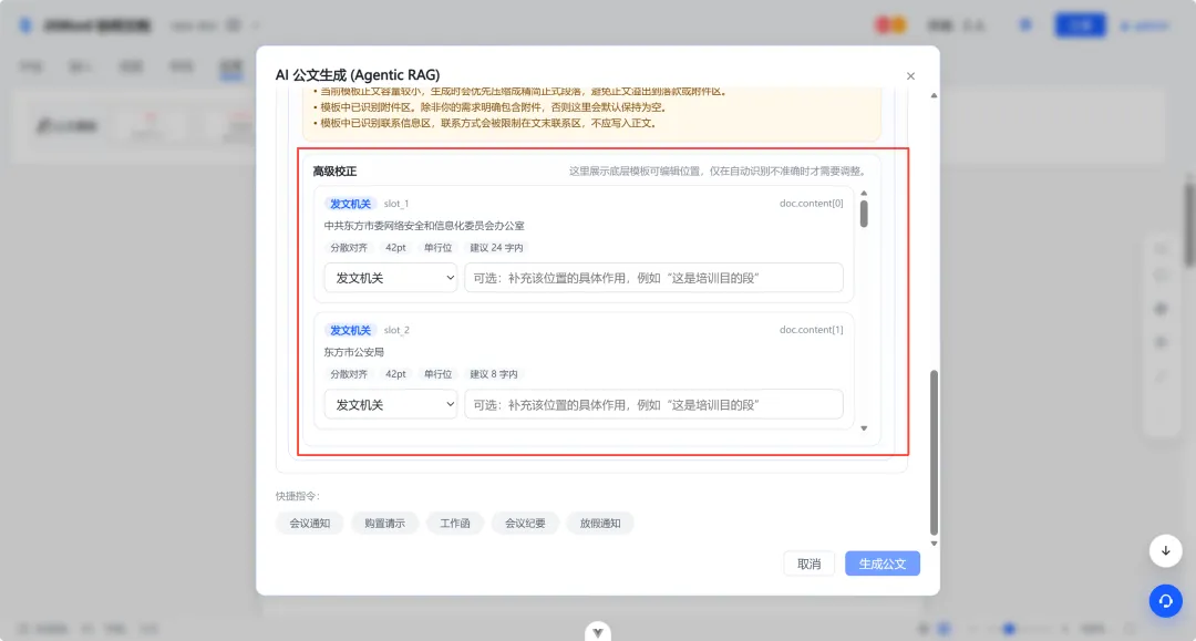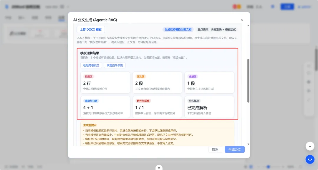 AI公文能力增强(支持指定模版一键生成公文)
