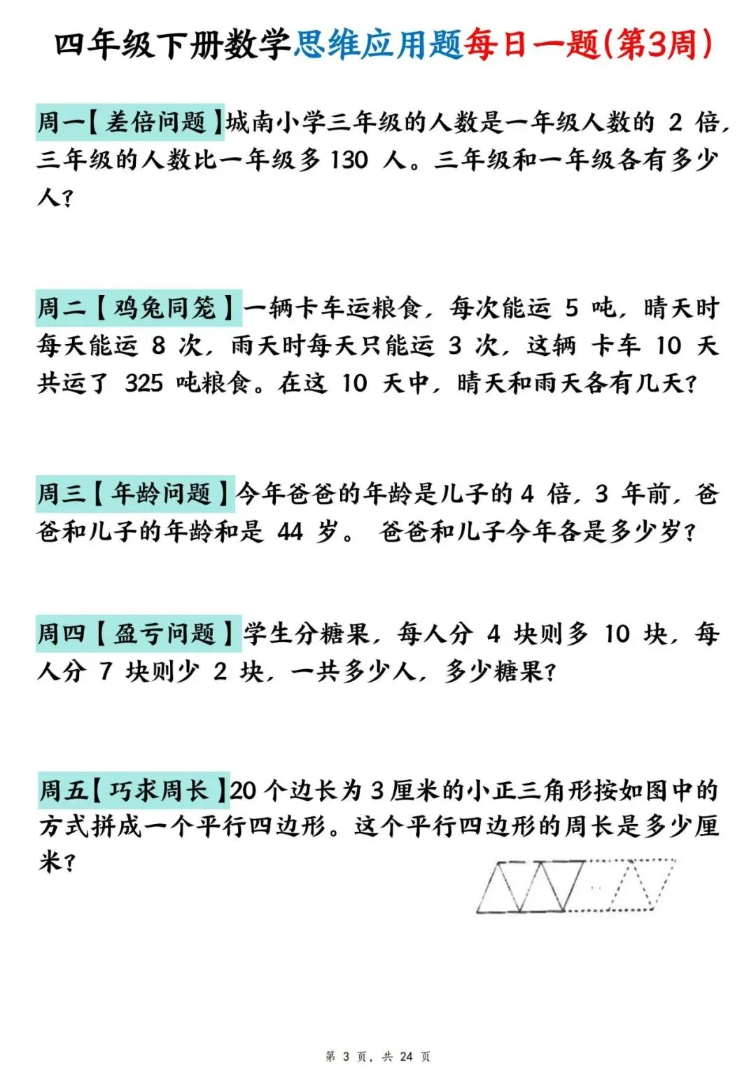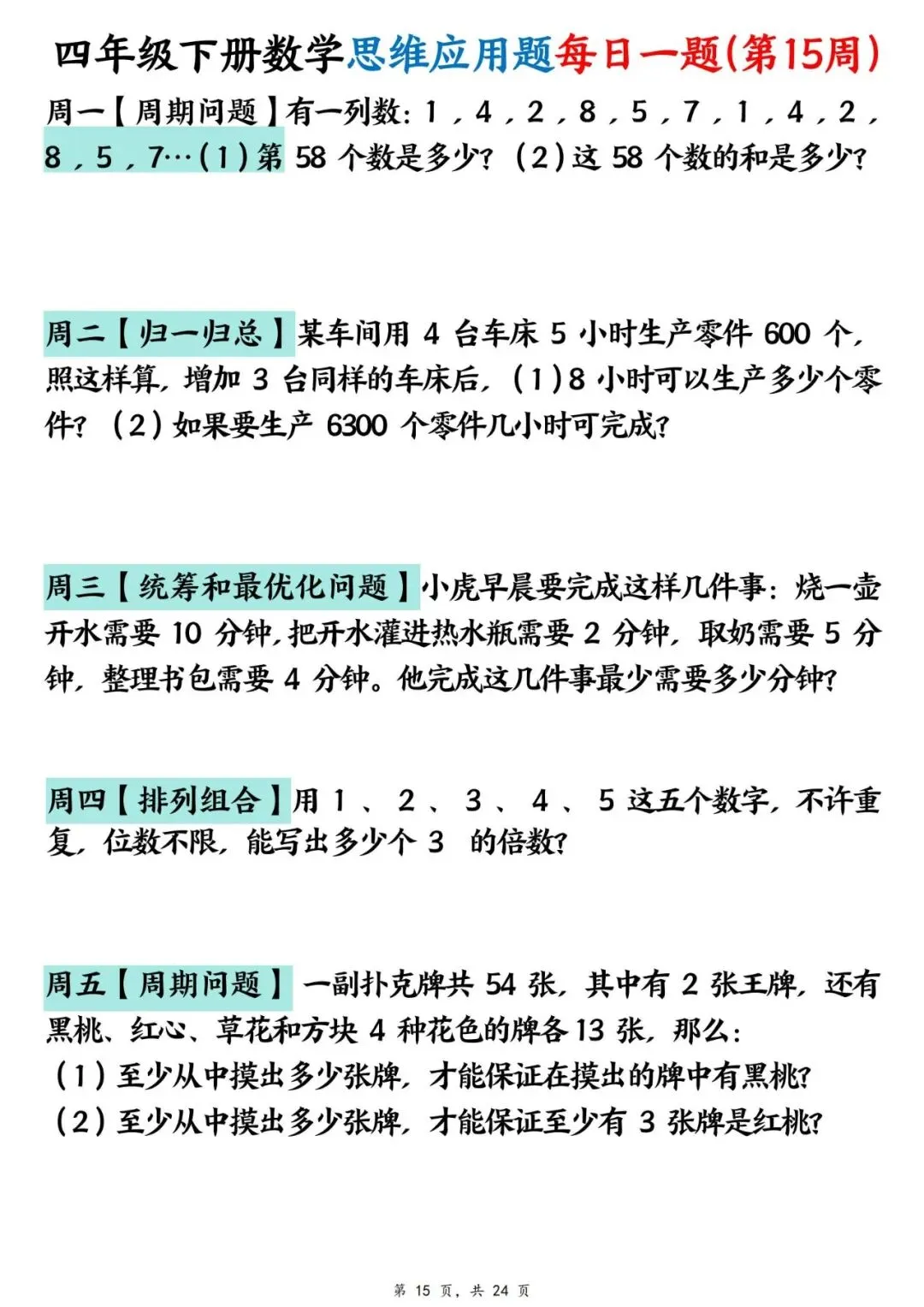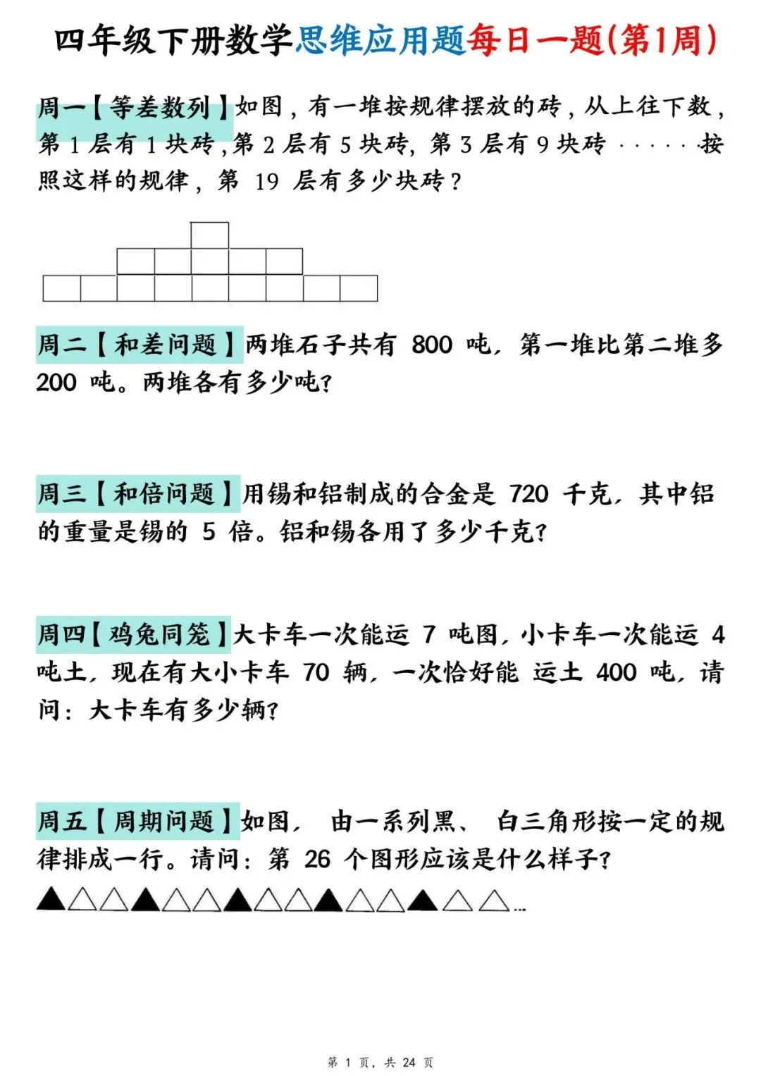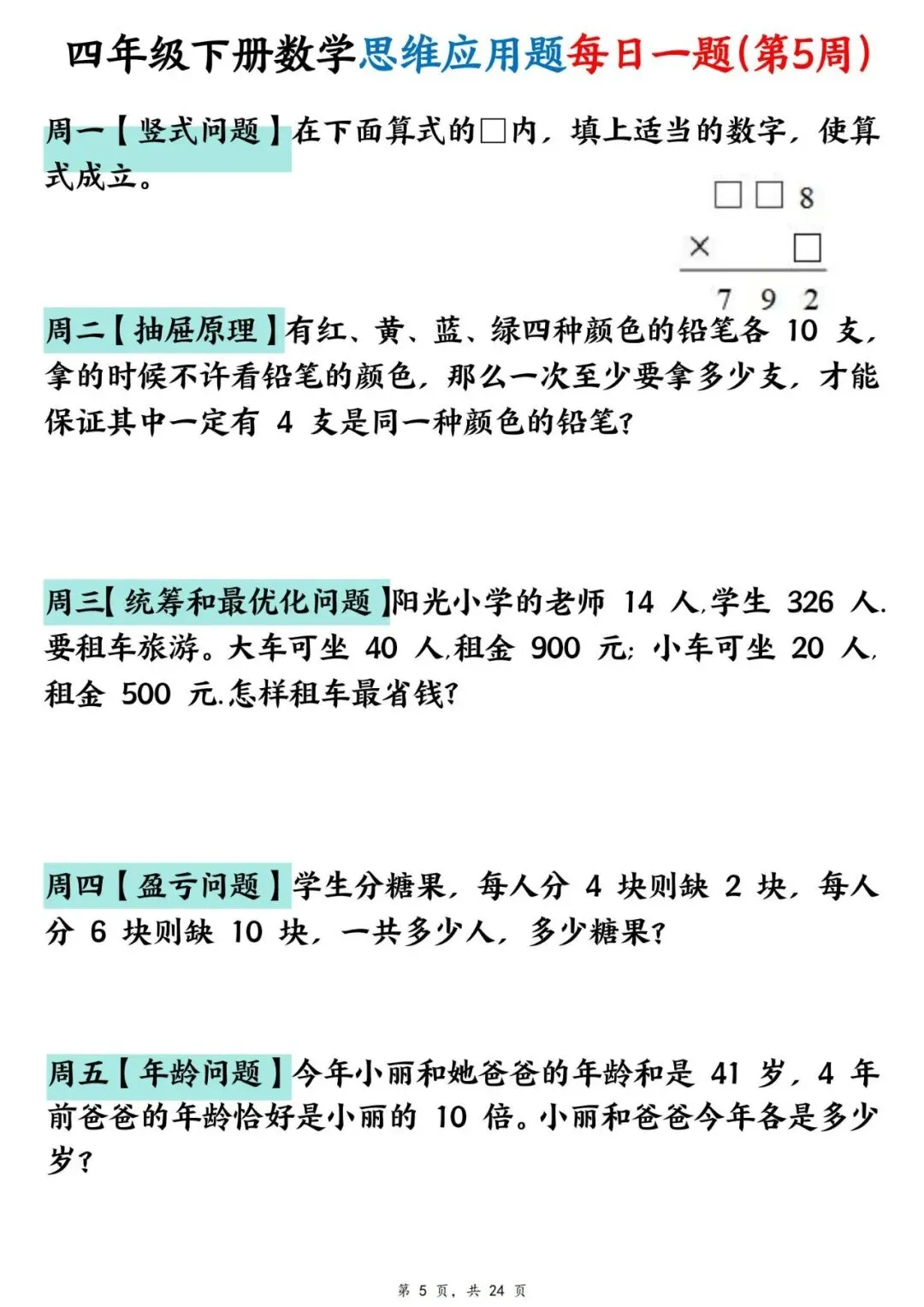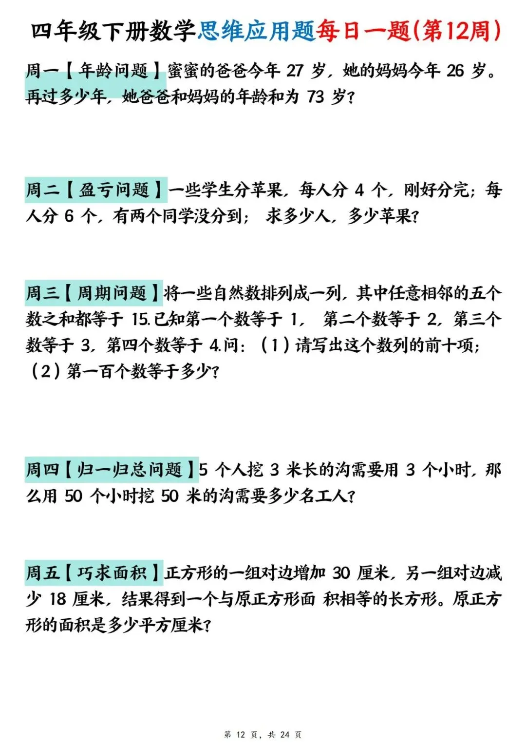 四年级下册数学【思维应用题】每日一练(可下载打印)