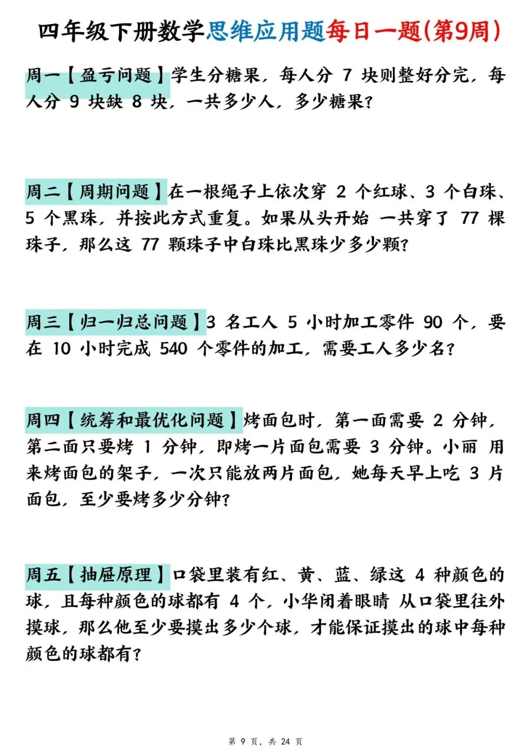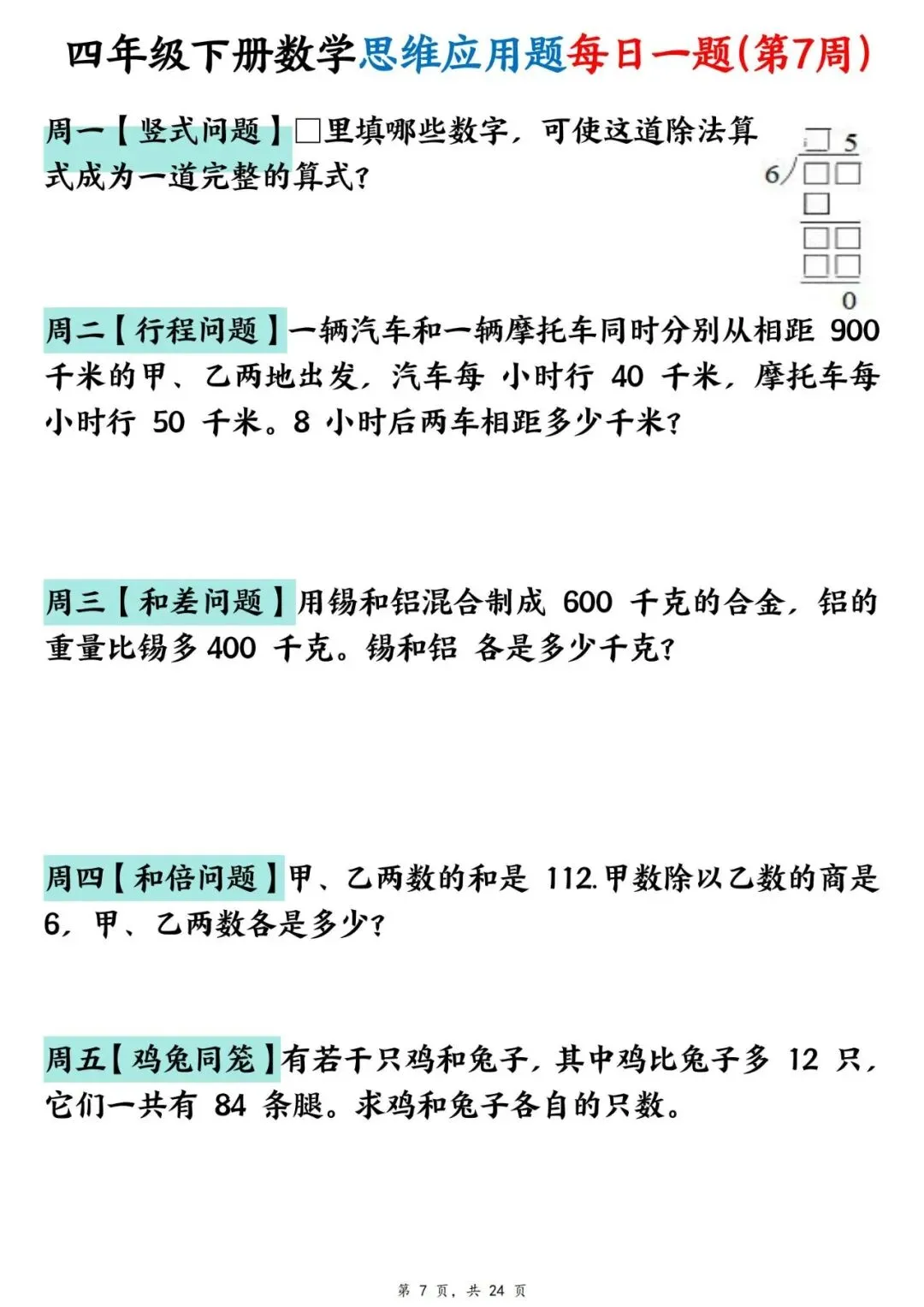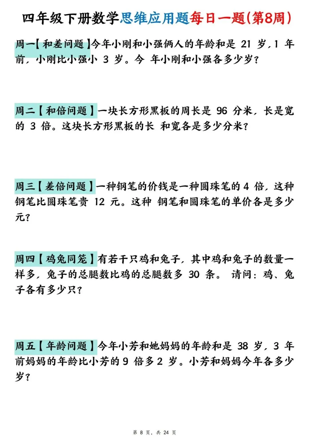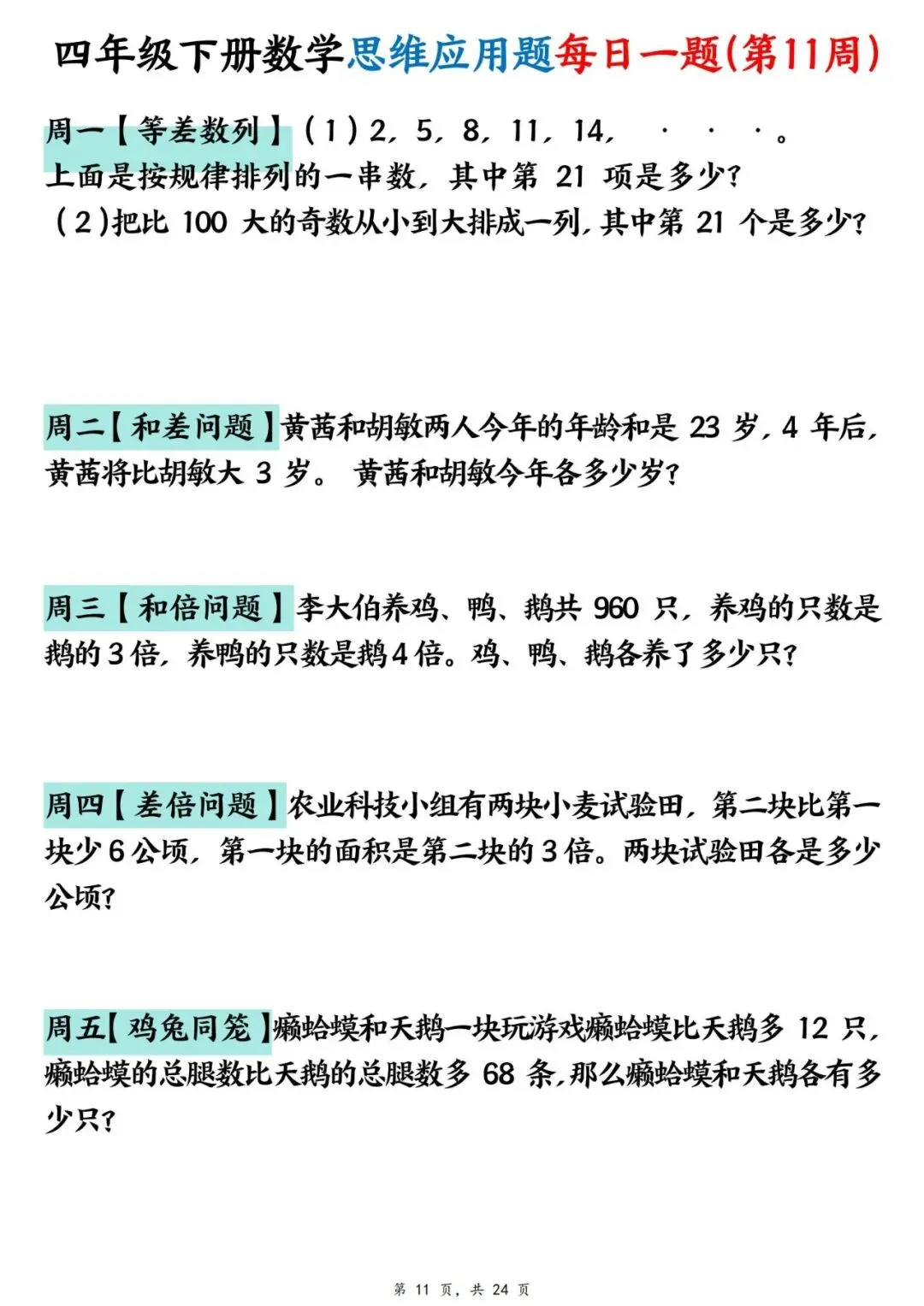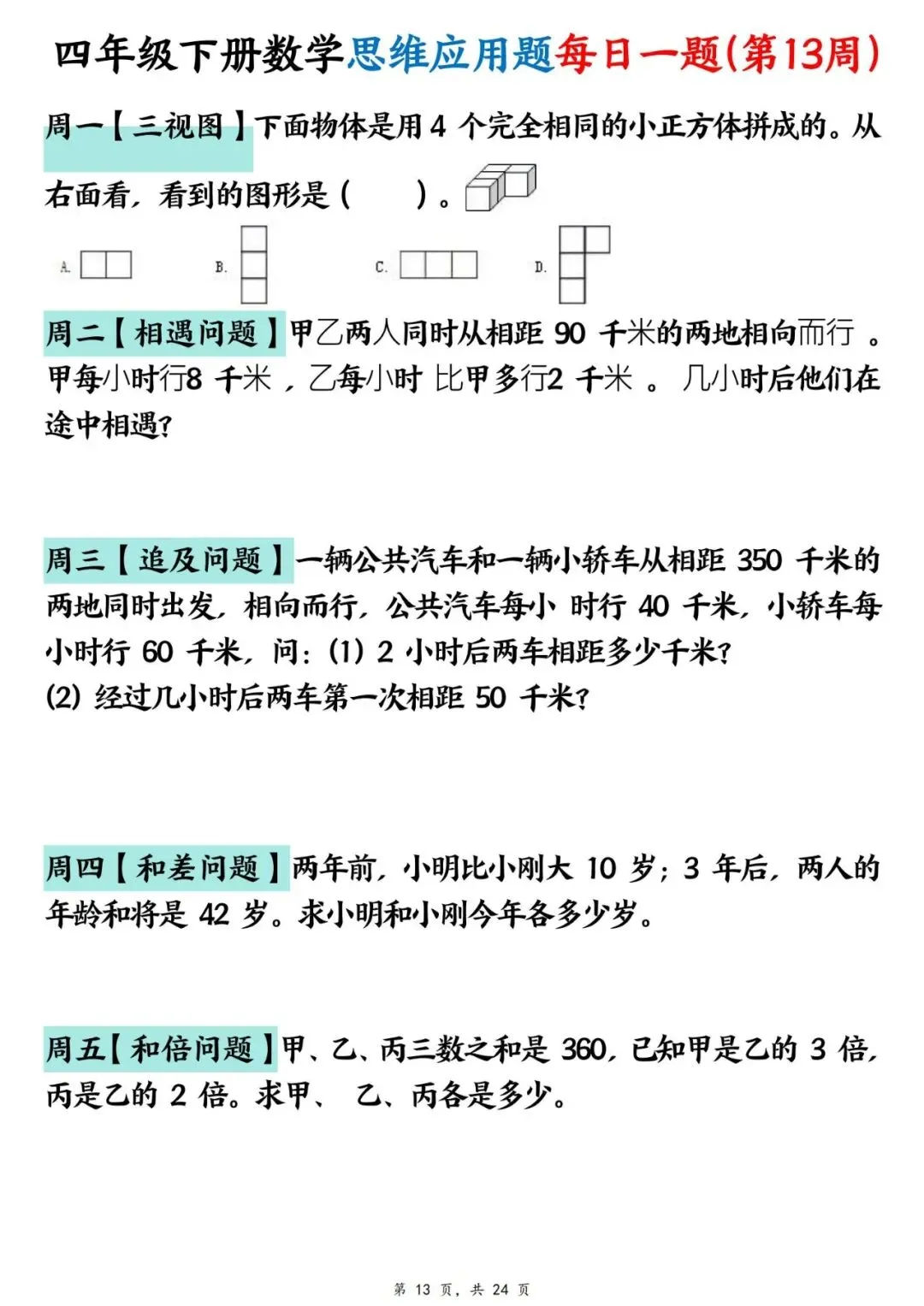 四年级下册数学【思维应用题】每日一练(可下载打印)