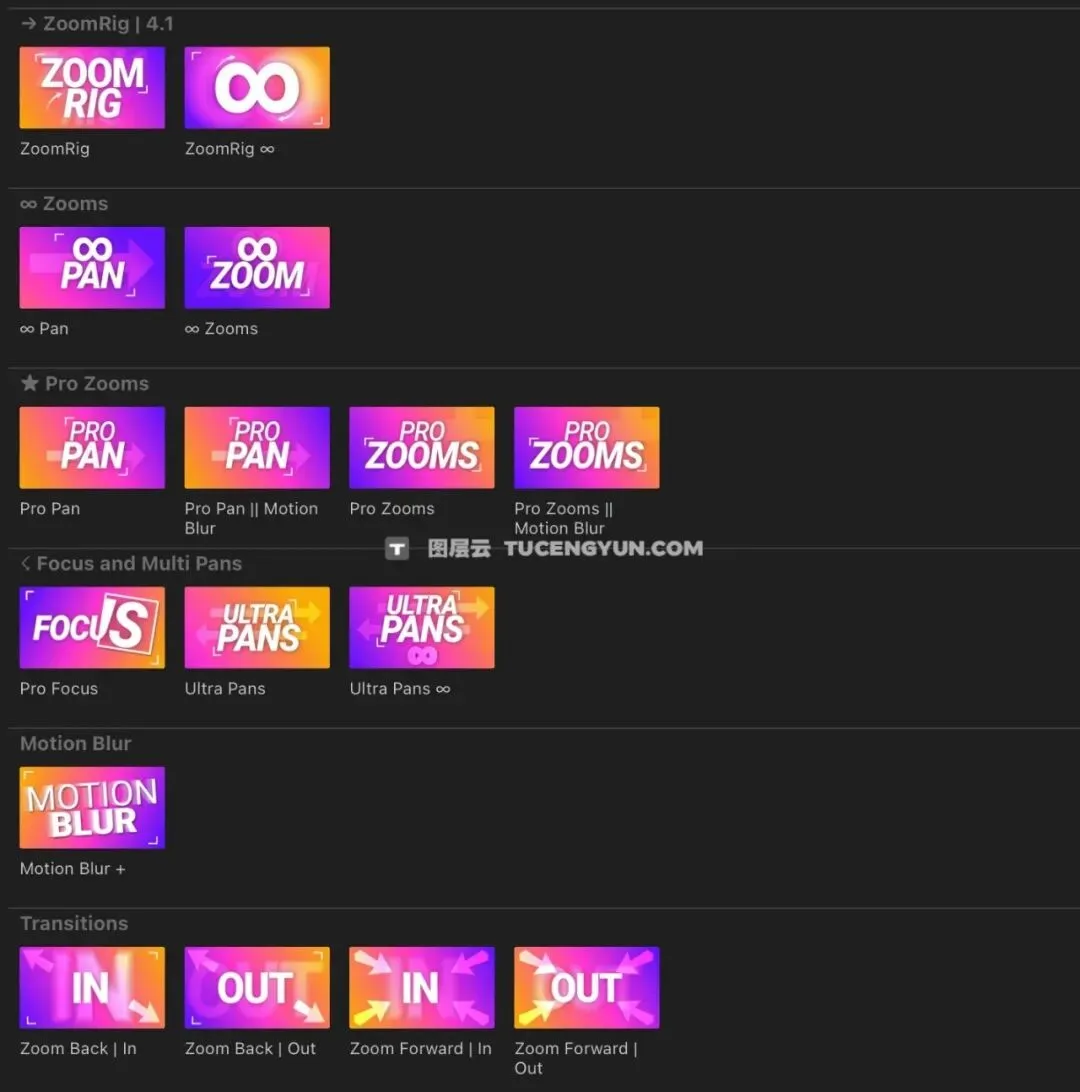 一个特殊的标题/效果,允许你在任何缩放/平移时应用逼真的视觉动态模糊。