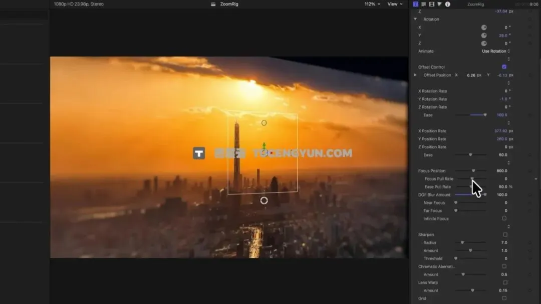 一个可以无限放大的缩放。它的功能类似于Final Cut Pro中的Ken Burns功能,但增加了诸如停止点和旋转等功能。