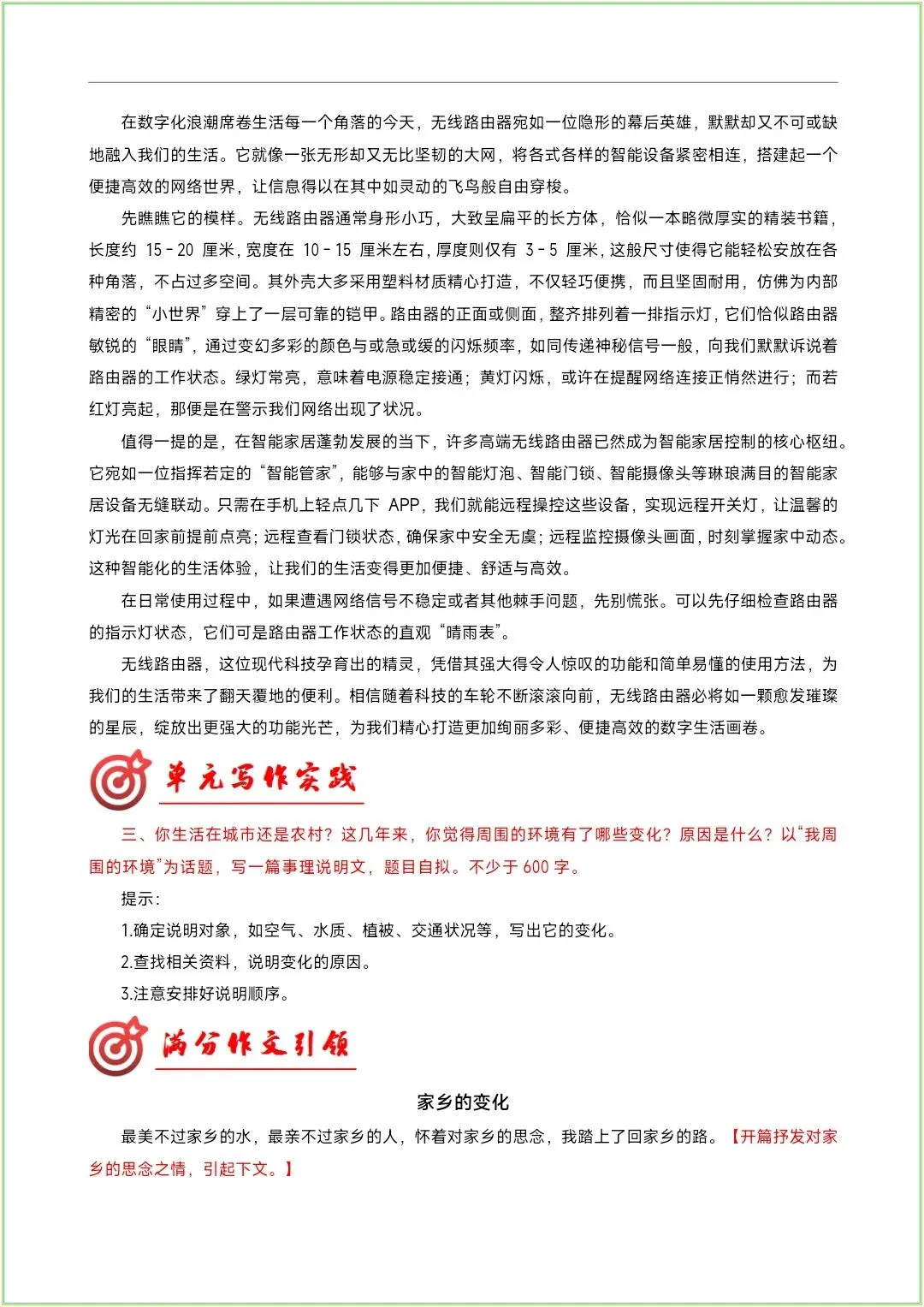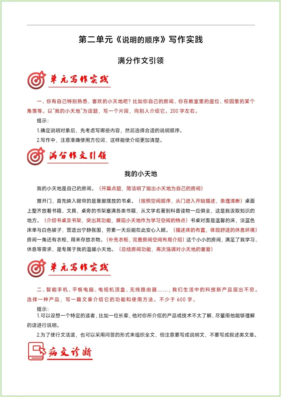 2026八下语文《第一单元:〈说明的顺序〉写作指导+范文》