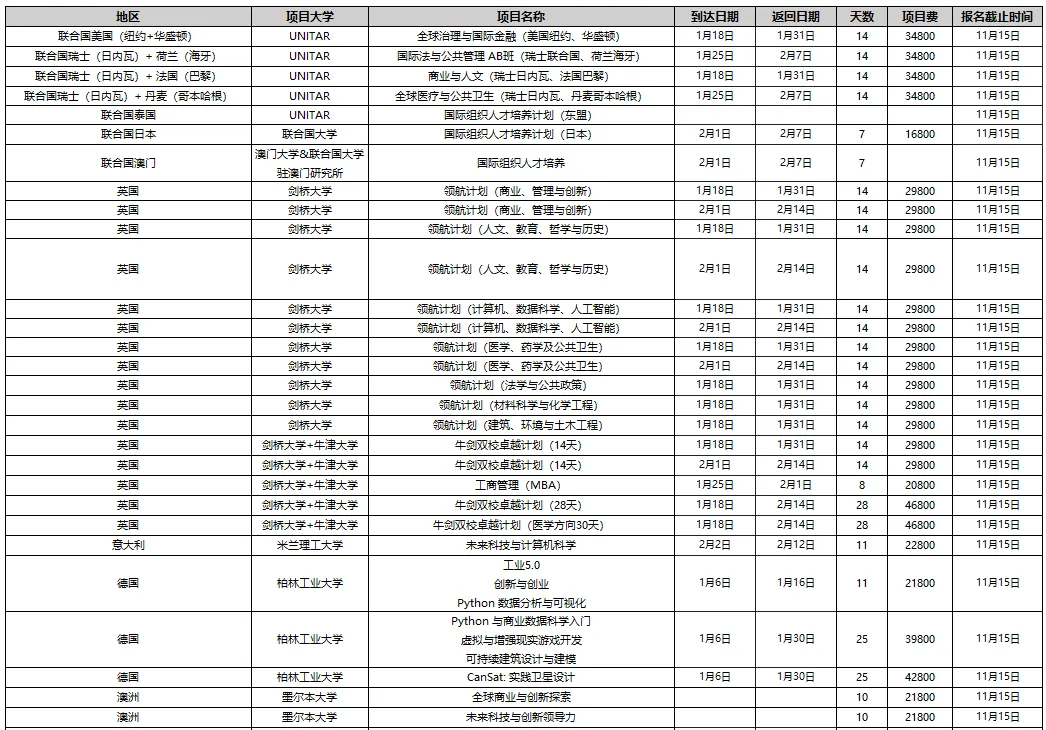 2026年罗客教育世界名校访学项目