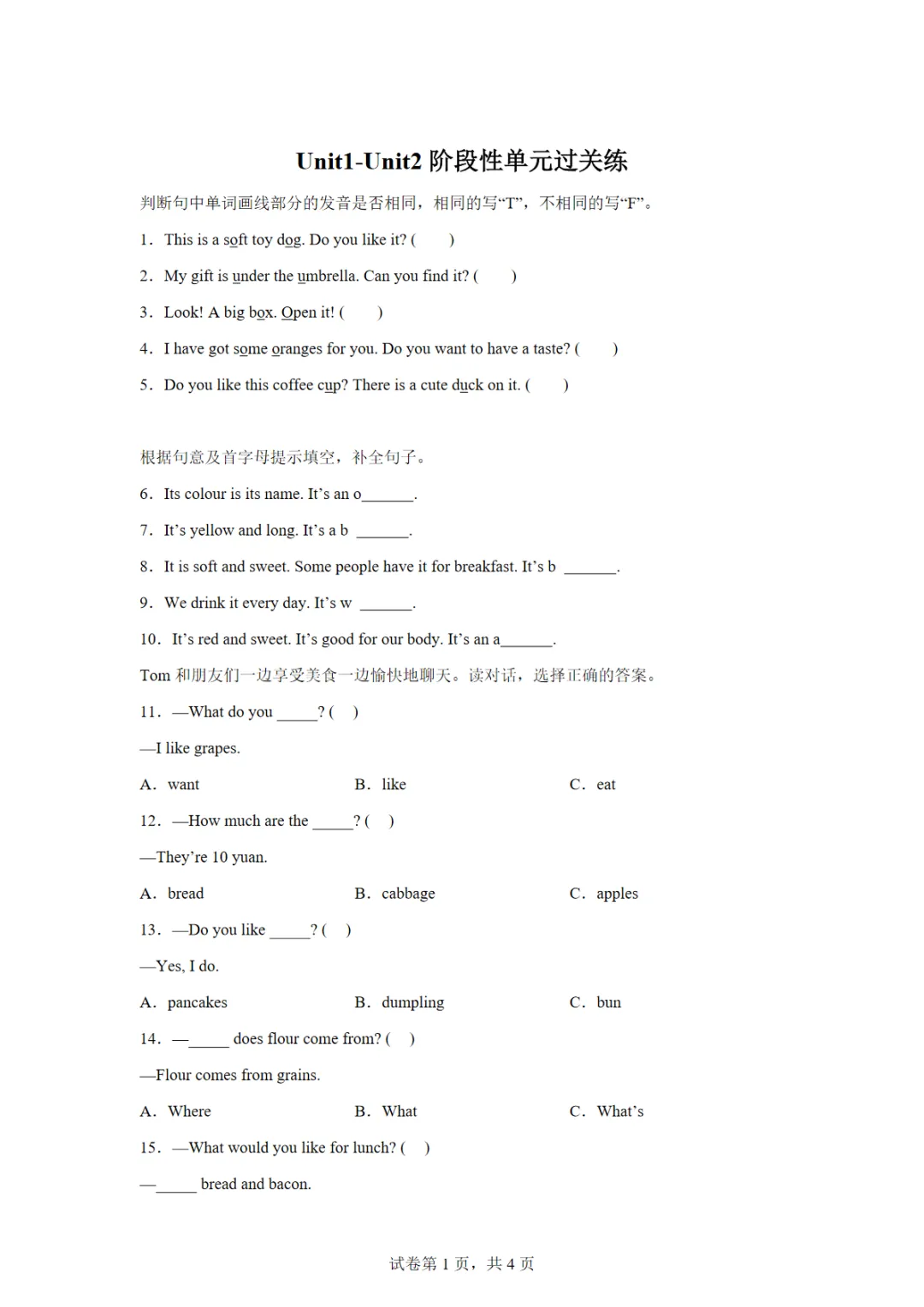 【免费下载】2025-2026学年冀教版(三起)英语三年级下册Unit1-Unit2(单元测试),可打印