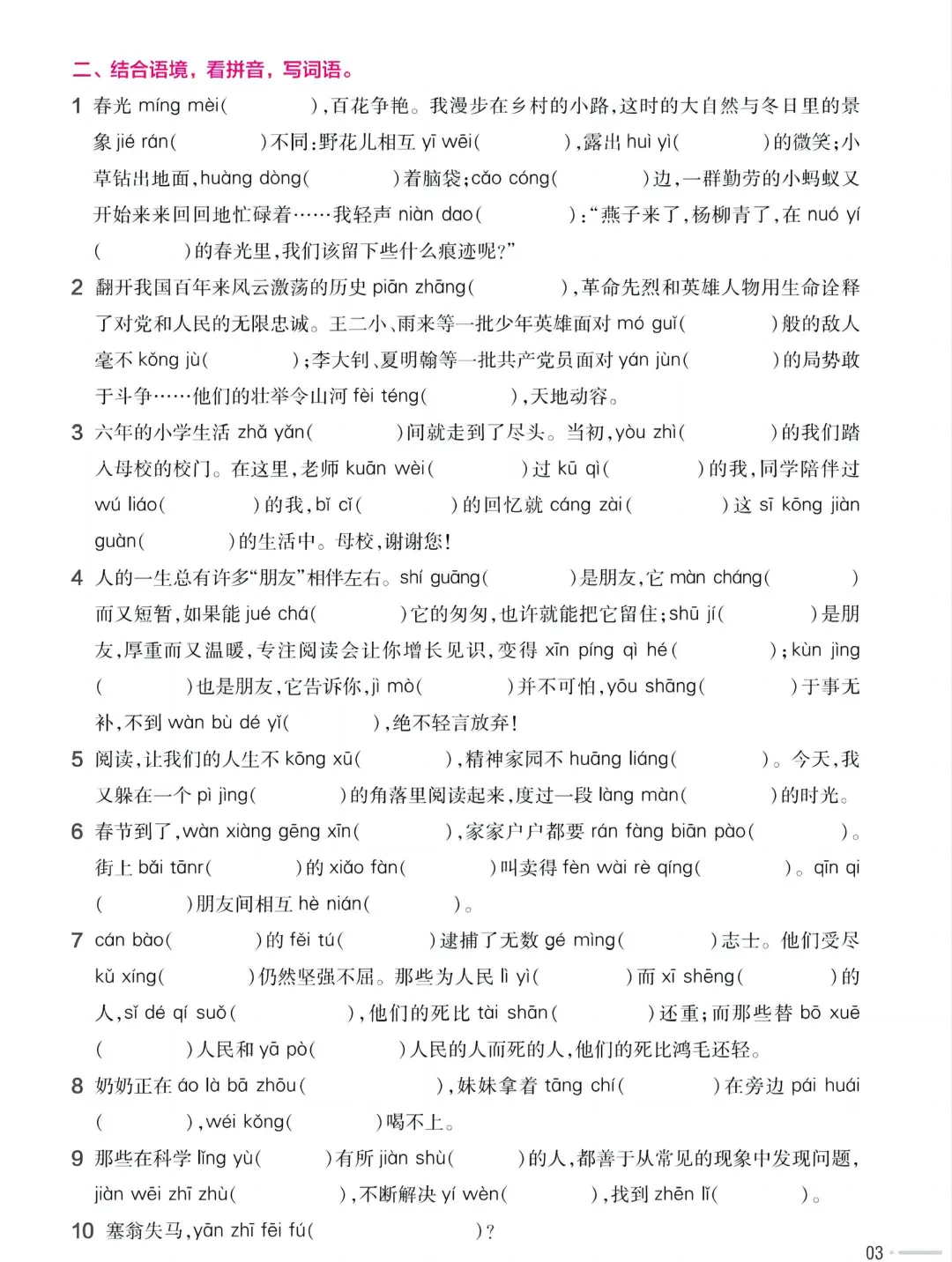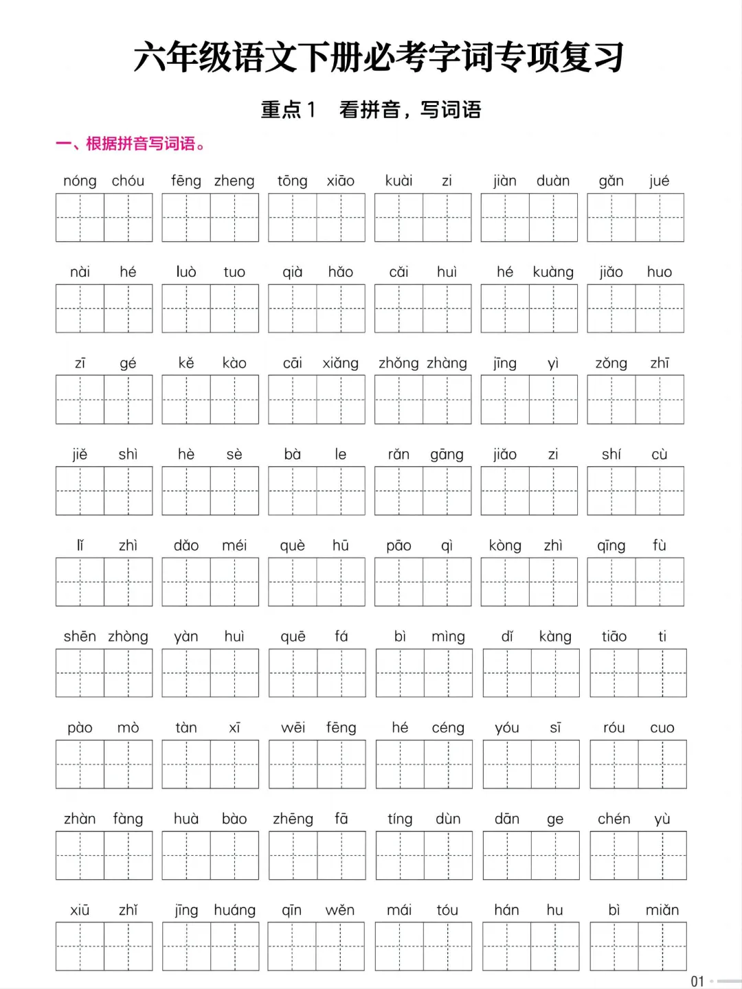 今天给大家分享:六年级下册语文 必考字词专项练习 |电子版可打印