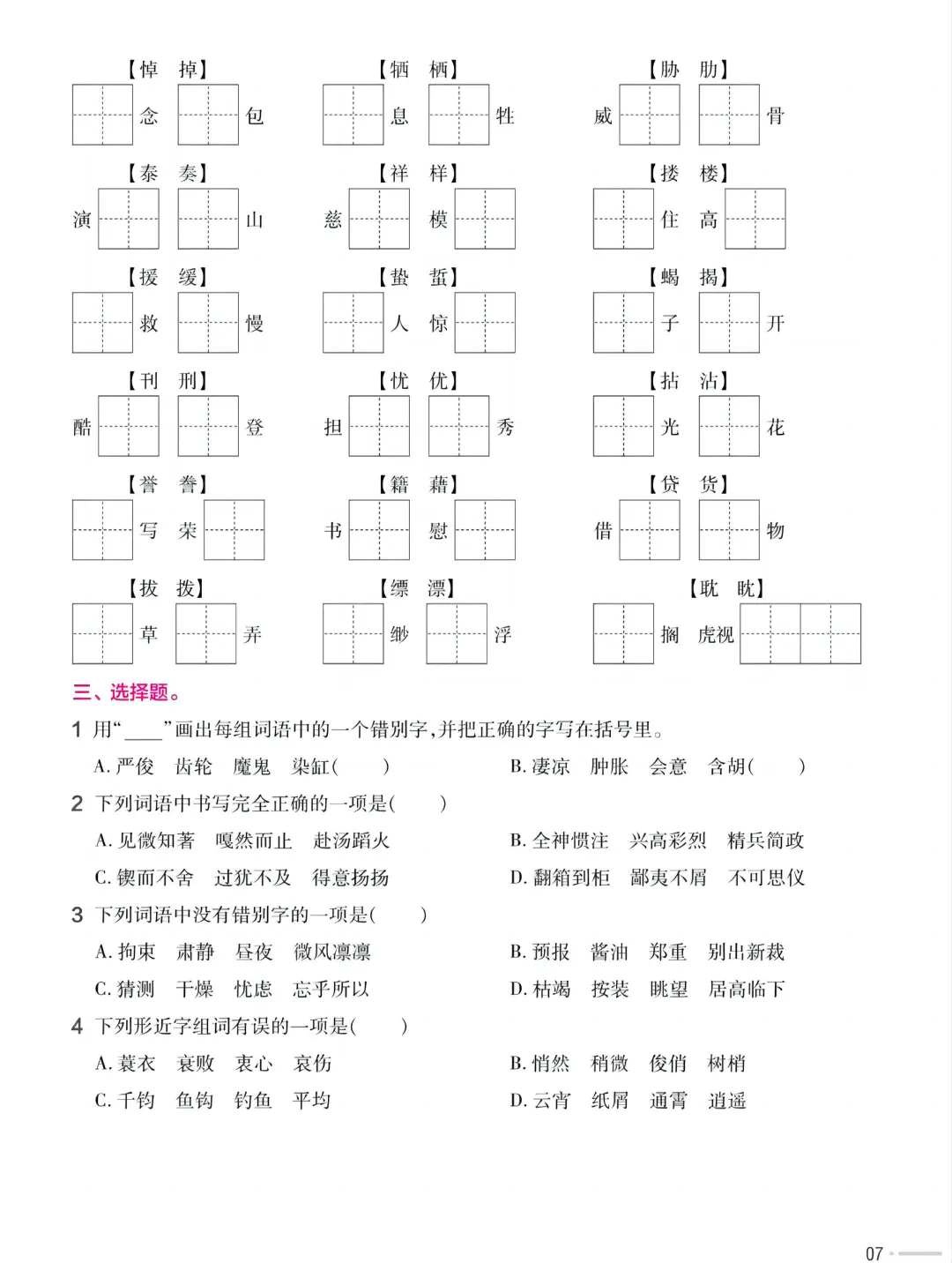 六年级下册语文 必考字词专项练习 |电子版可打印