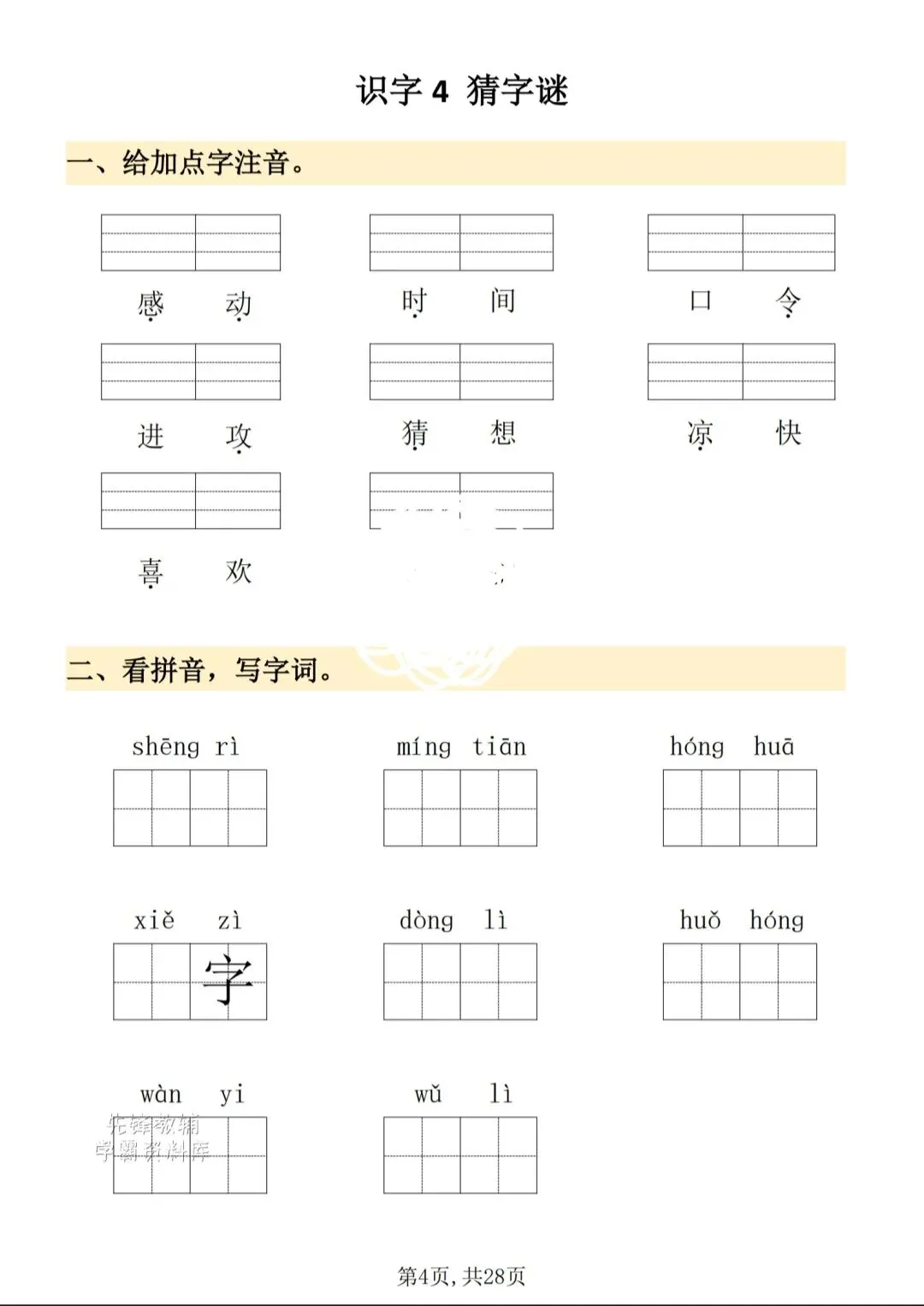 老师发的晚延作业,可打印