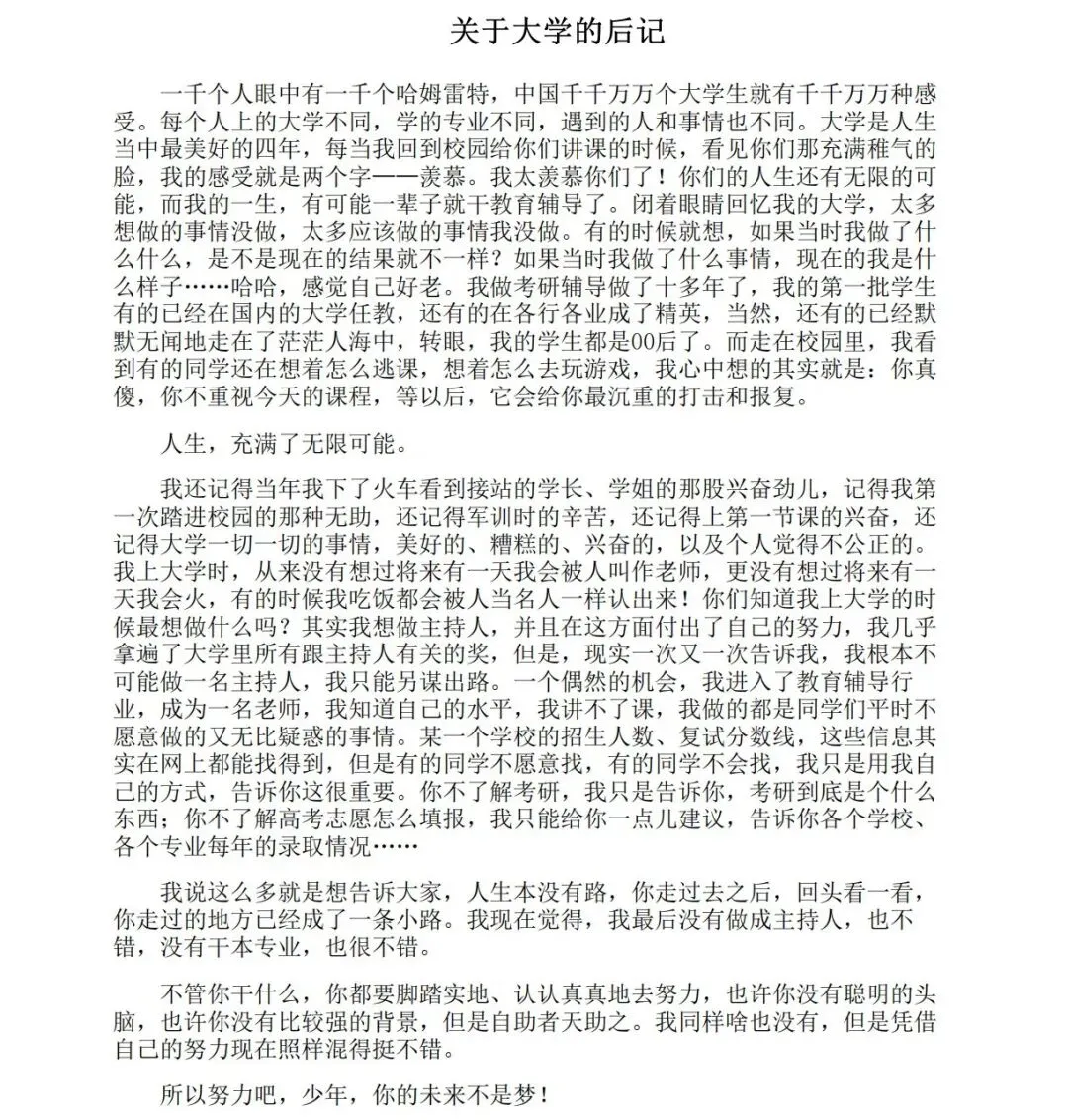 他擅长将复杂的升学、就业形势转化为通俗易懂的比喻和直言不讳的建议,这种“话糙理不糙”的风格,使其作品不仅是指南,更是一种激励和警醒。