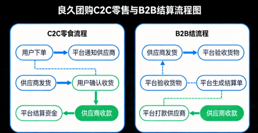 团长收到的钱不经过平台,而是逐级上交,每一级在交单时自动扣除相应的利润。这种模式对于订单流转和资金核销的准确性要求较高。