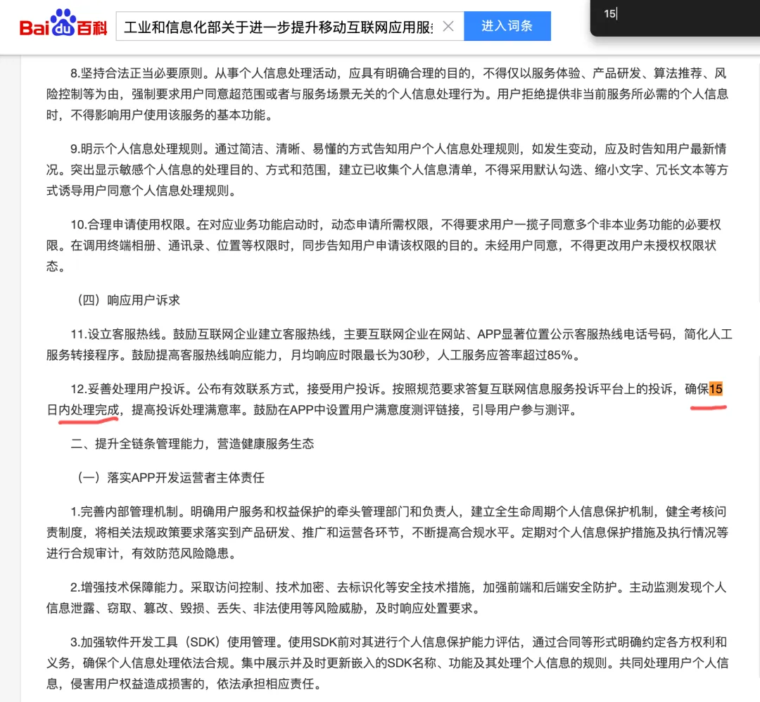 将“我们将在 15 天内答复您的请求”明确修改为“我们将在 15日(自然日) 内答复您的请求”。