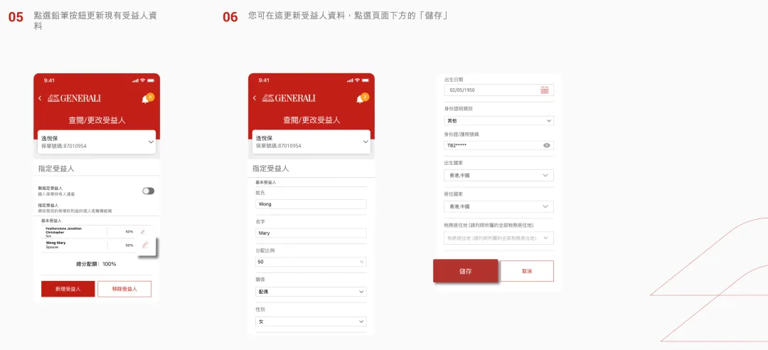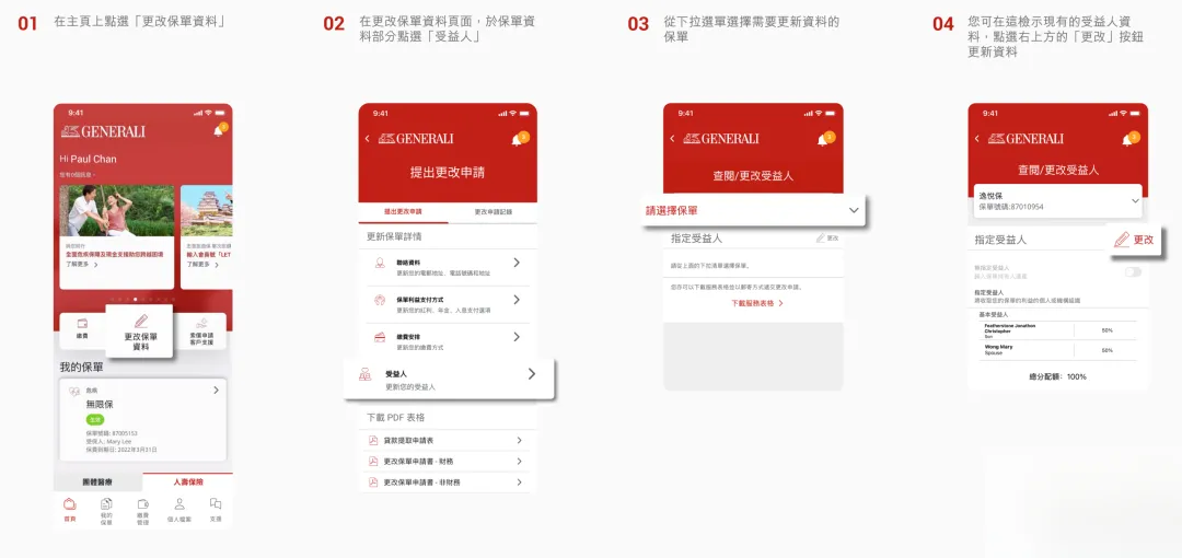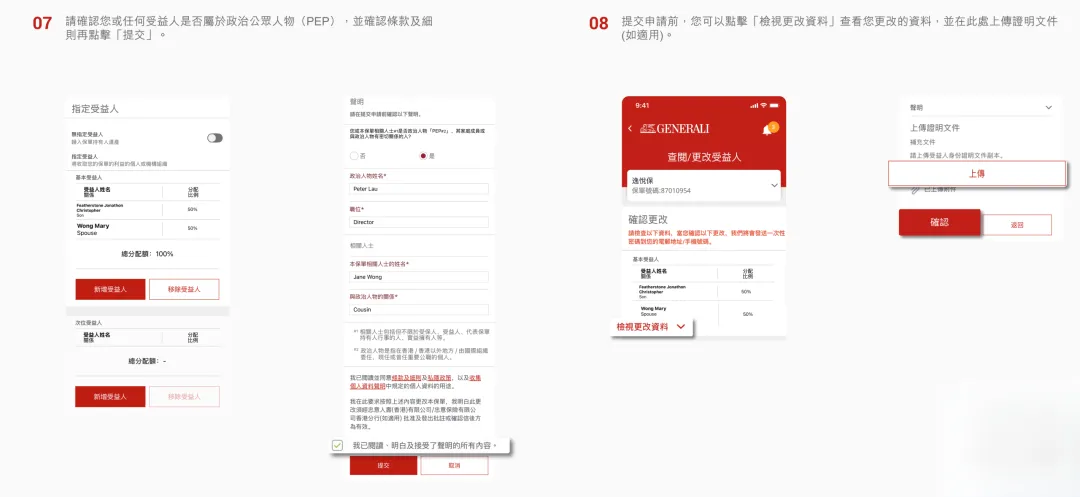 ⑥更改受益人or新增受益人or移除受益人:灵活调整,一键安排