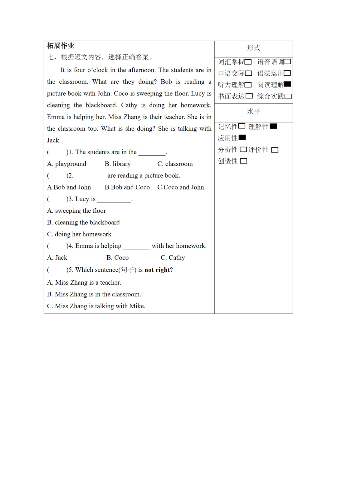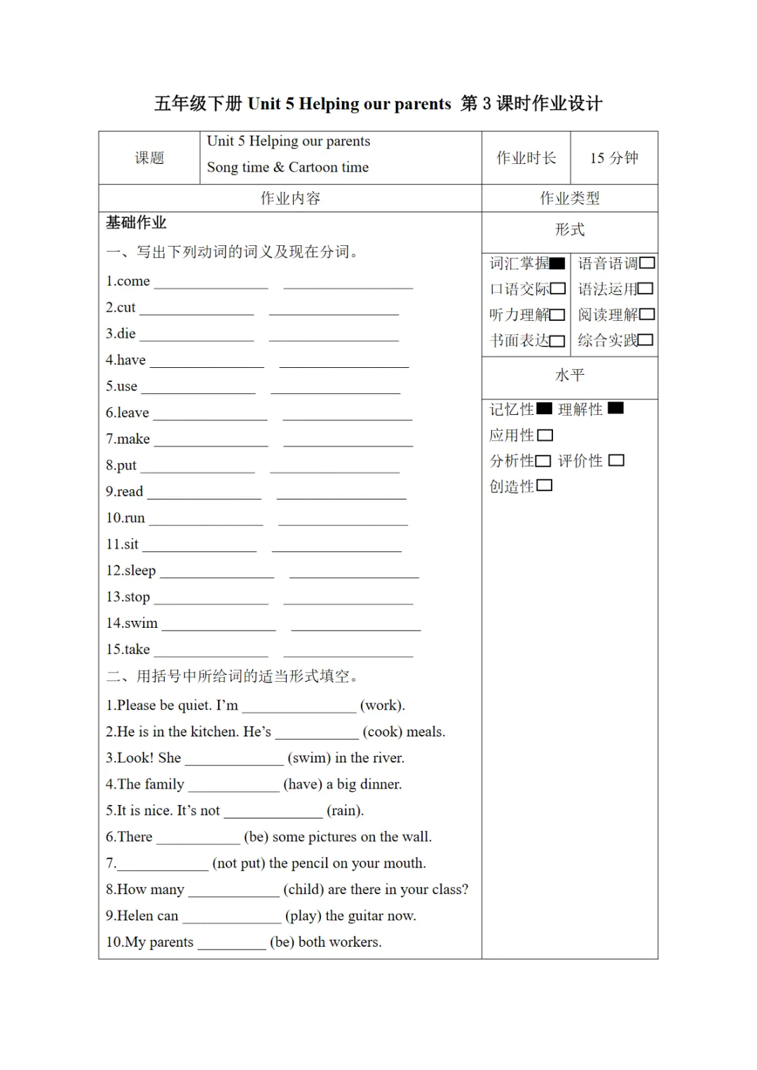 【免费下载】Unit5 第3课时(分层作业)Song time & Cartoon time-(译林版三起),WORD电子版,可编辑,可打印