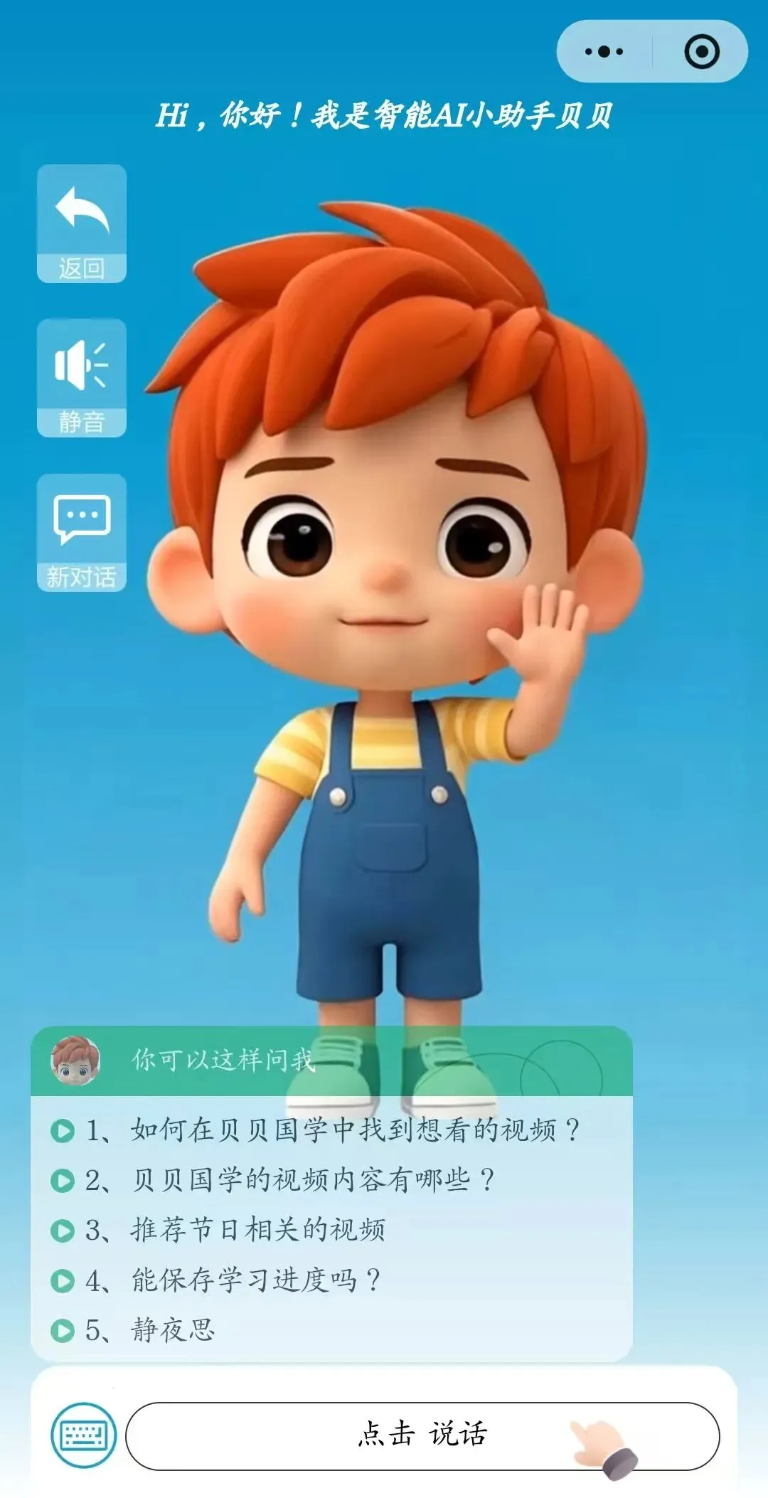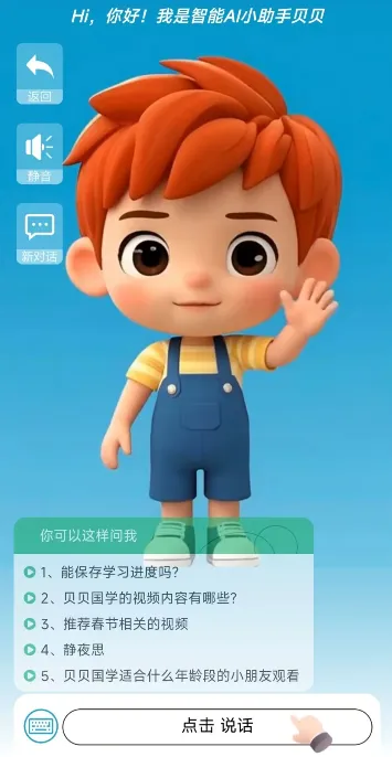 贝贝不只是“说话”,更懂得“行动”。当孩子提到某个关键词,它会主动调取平台优质资源,实现精准内容投放。