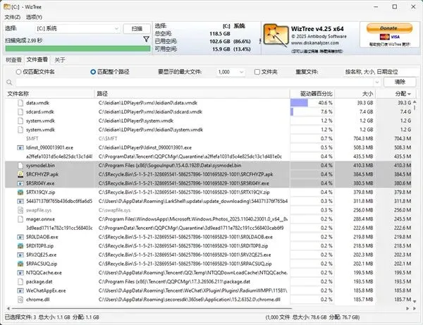 [软件名称]: wiztree[软件大小]:7.31Mb