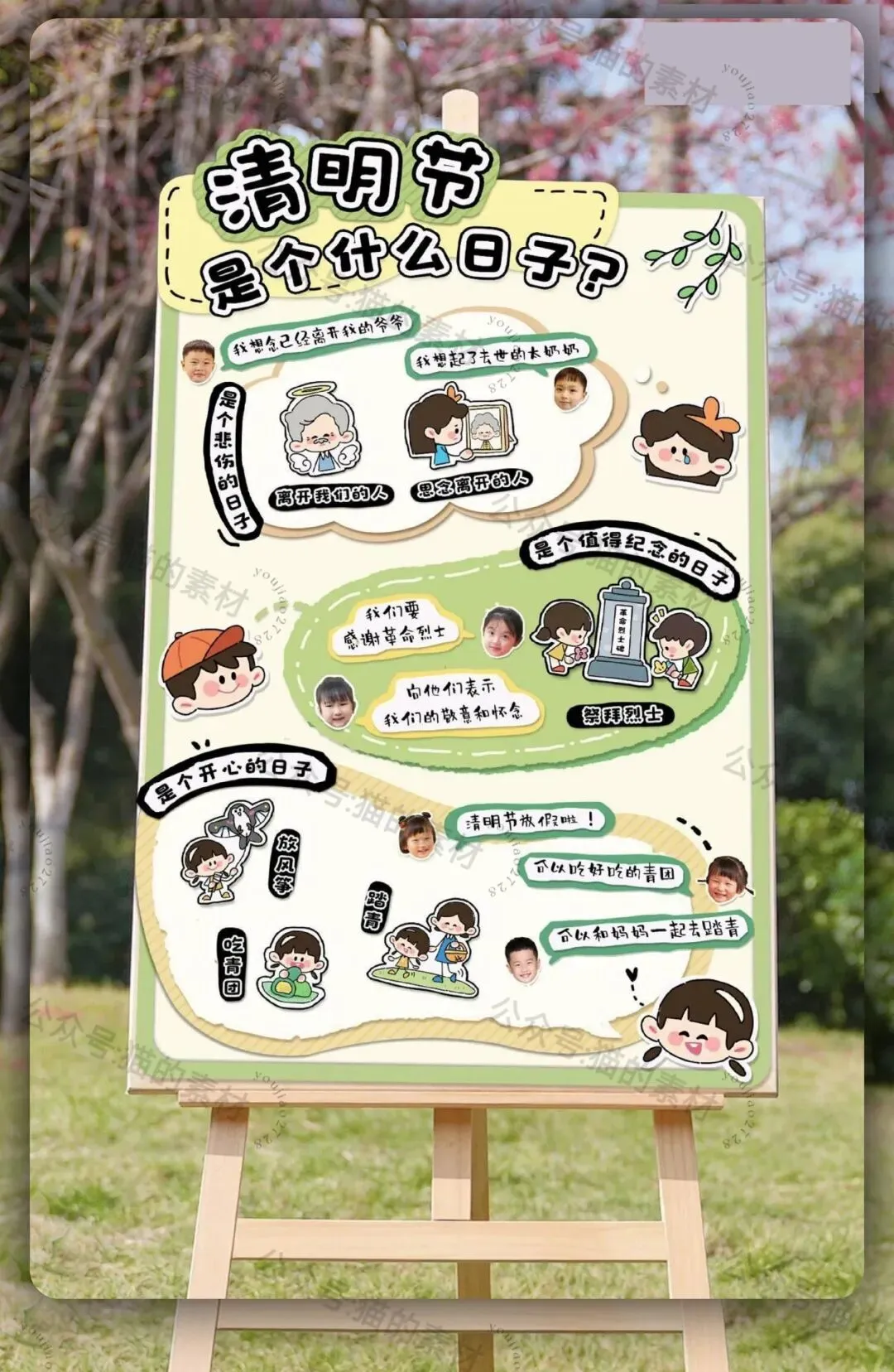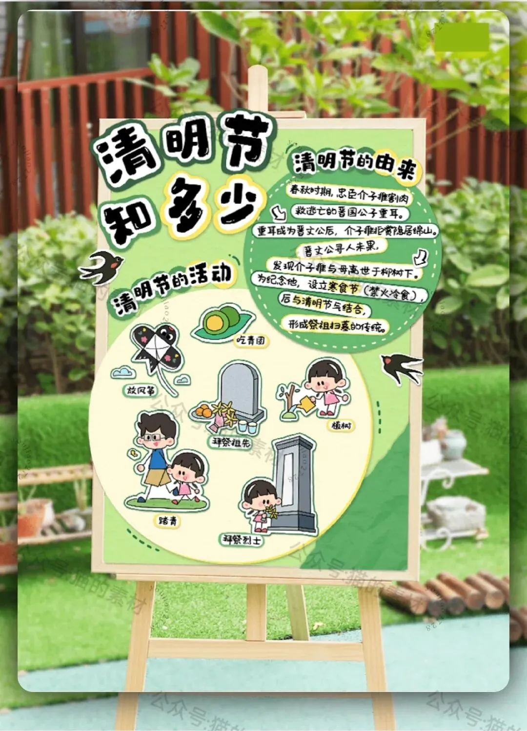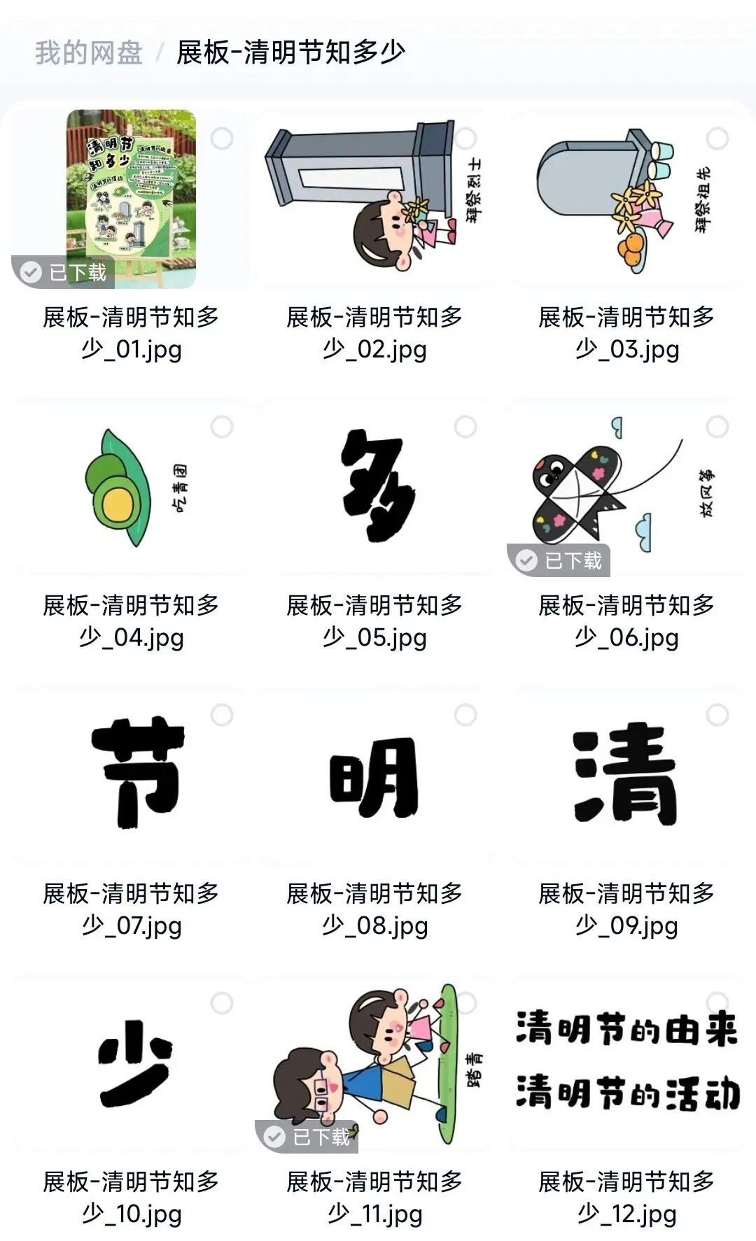 清明节主题墙布置可打印单个素材图
