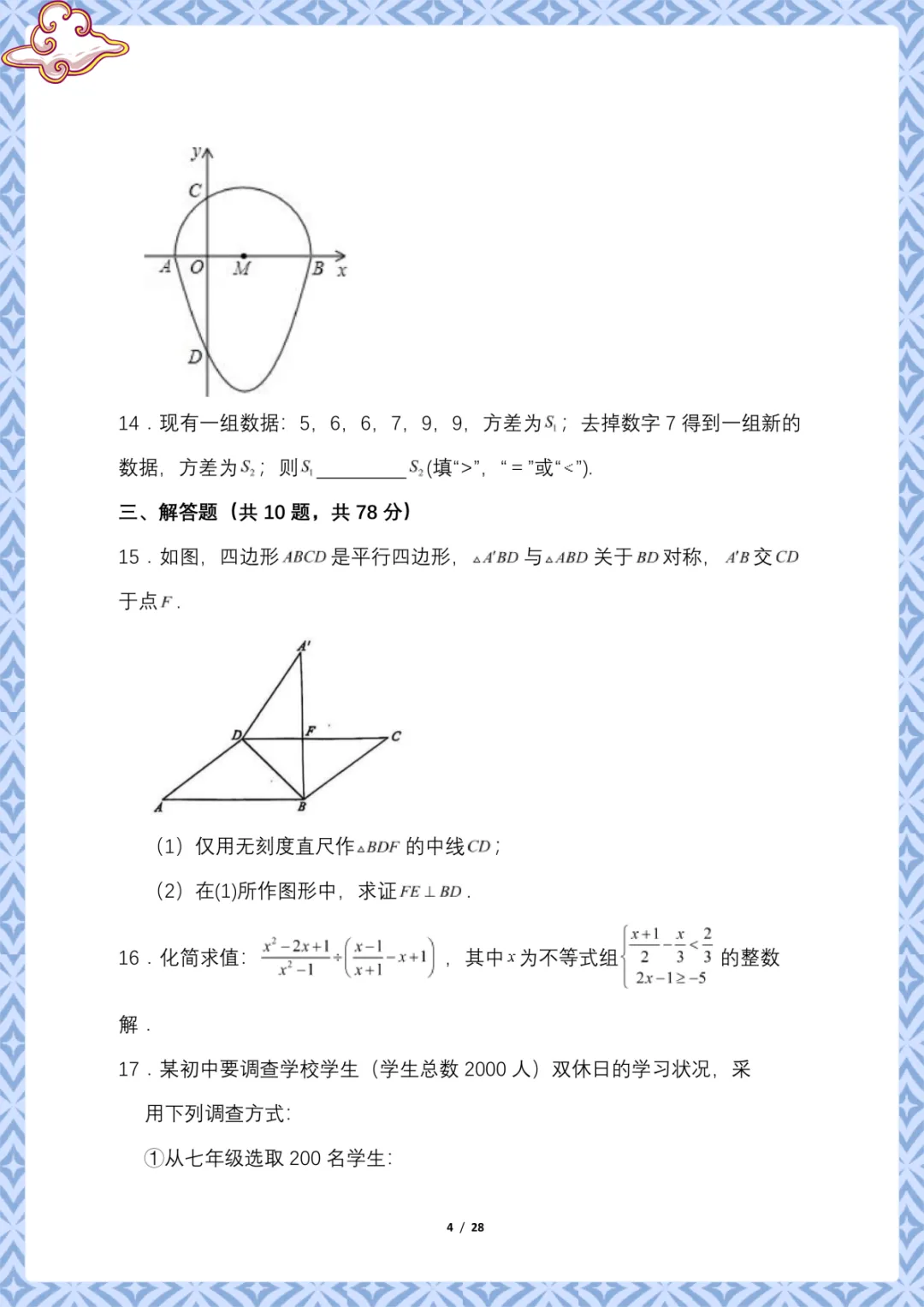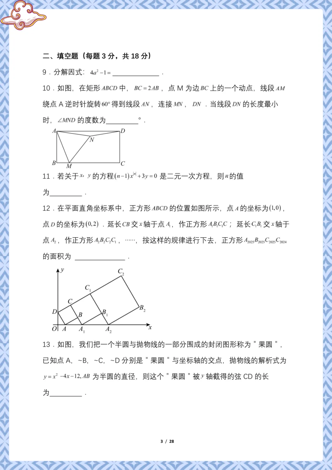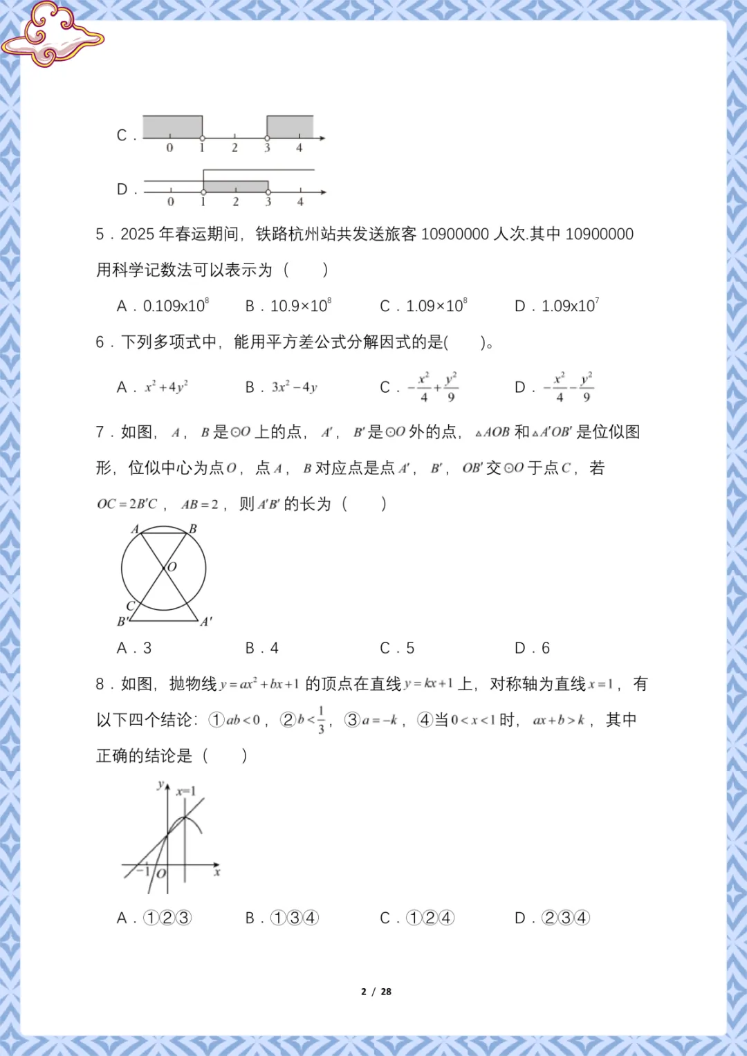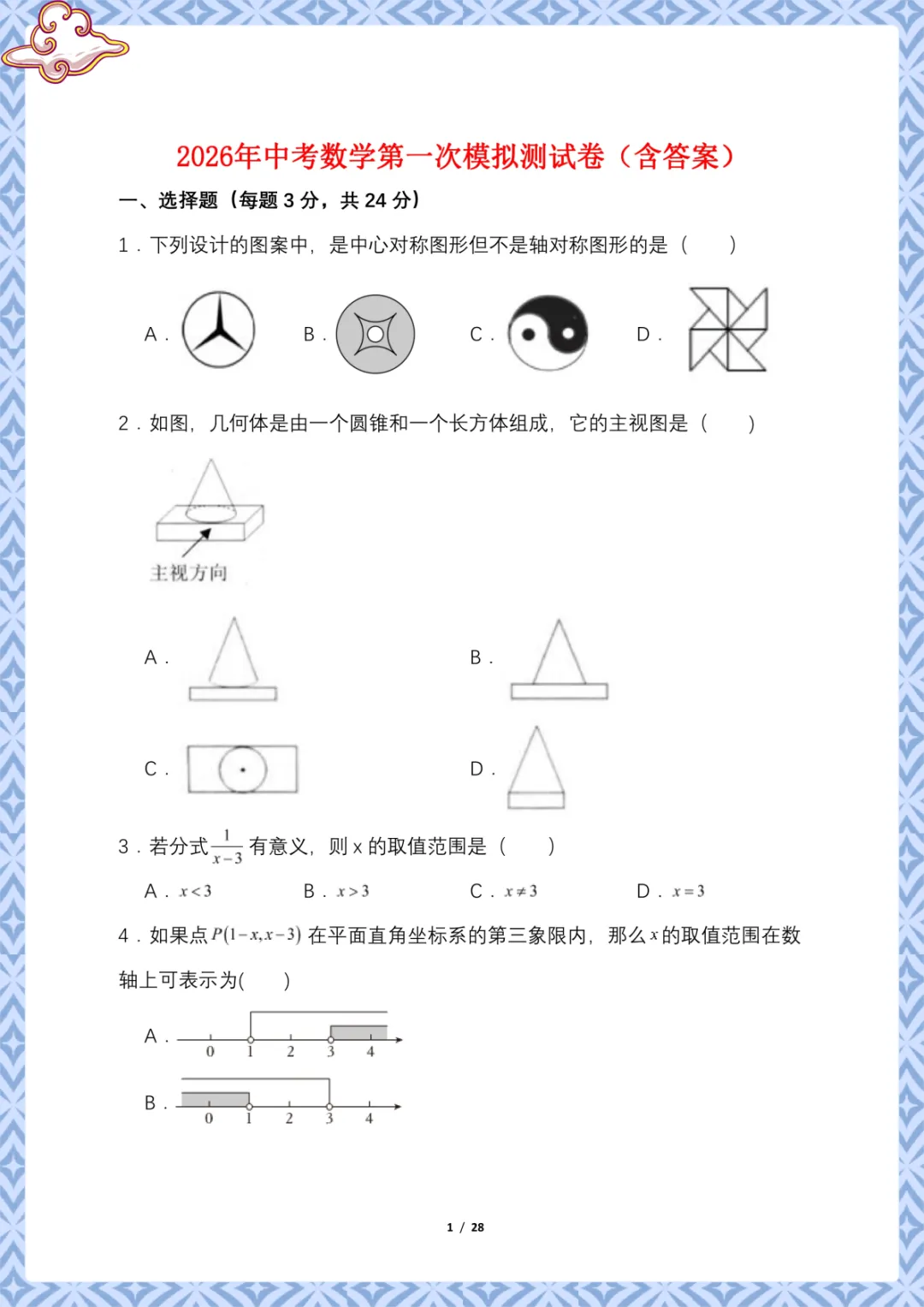 2026年中考数学第一次模拟测试卷 电子版可下载打印