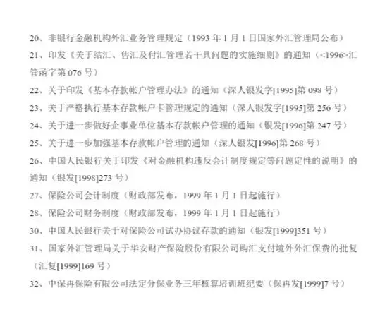内容包括会计法、保险法、企业财务通则、会计准则、会计基础工作规范、会计档案管理办法、现金管理暂行条例、保险会计制度、保险公司财务制度、中国人民银行关于对保险公司试办协议存款的通知、国家外汇管理局关于华安财产保险股份有限公司购汇支付境外外汇保费的批复、中保再保险有限公司法定分保业务三年核算培训班纪要等,适合财会、保险、金融、企业财务等学习参考。