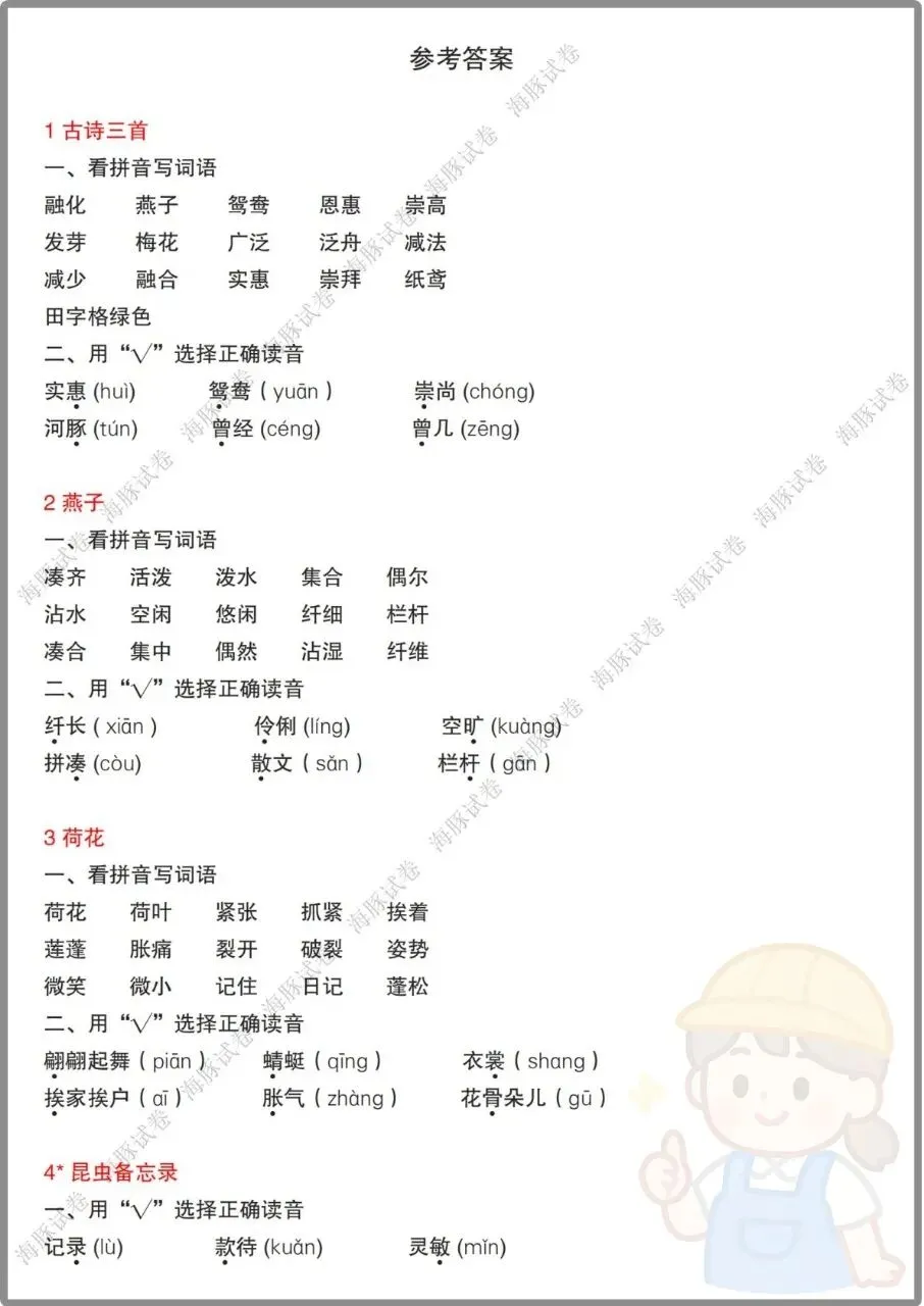附答案共27页,电子版可打印,每天花10分钟默写打卡,轻松搞定字词基础,为阅读和写作打牢根基!需要的家长快收藏,让娃告别字词丢分~如果觉得合适,请支持正版!