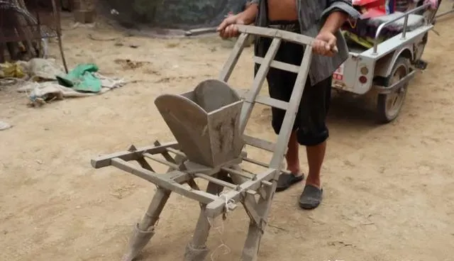 这个三条腿撑地的大架子叫木耧,庄稼人心里有数,种麦子播种专用,牛马在前头慢悠悠拉着,后头人扶着把手往前推进,种子从斗里顺着管落进地沟,妈妈常说,一趟下地回来鞋上全沾泥,回头一看种得齐齐整整,现在拖拉机一过,乡下孩子都未必知道怎么使了。