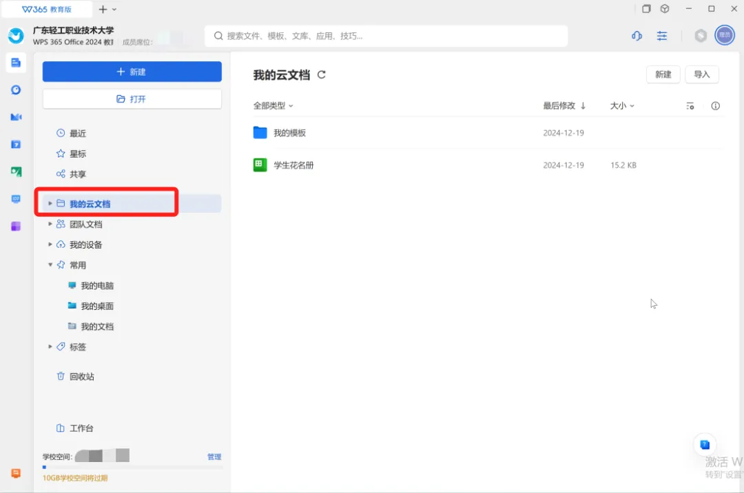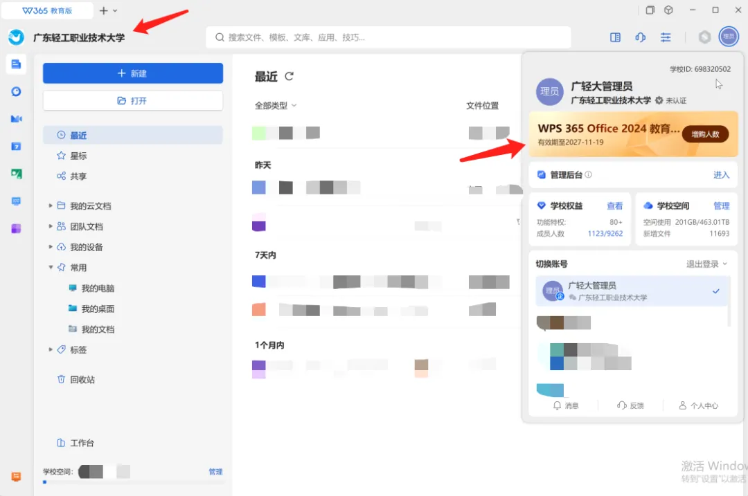 广轻大WPS 365教育版账号激活