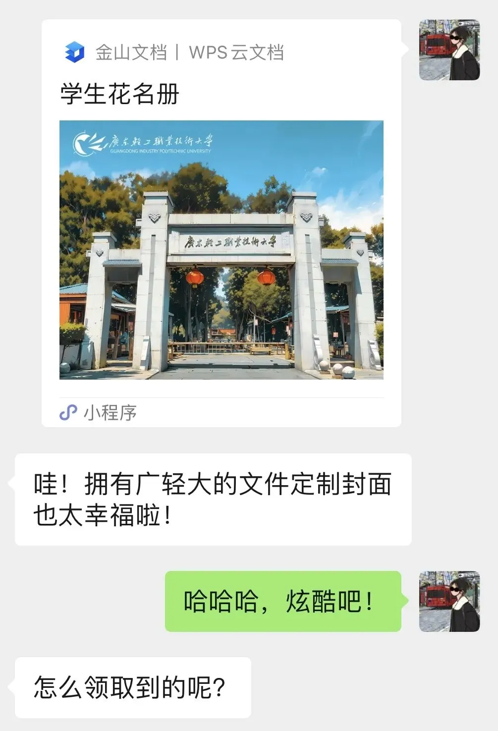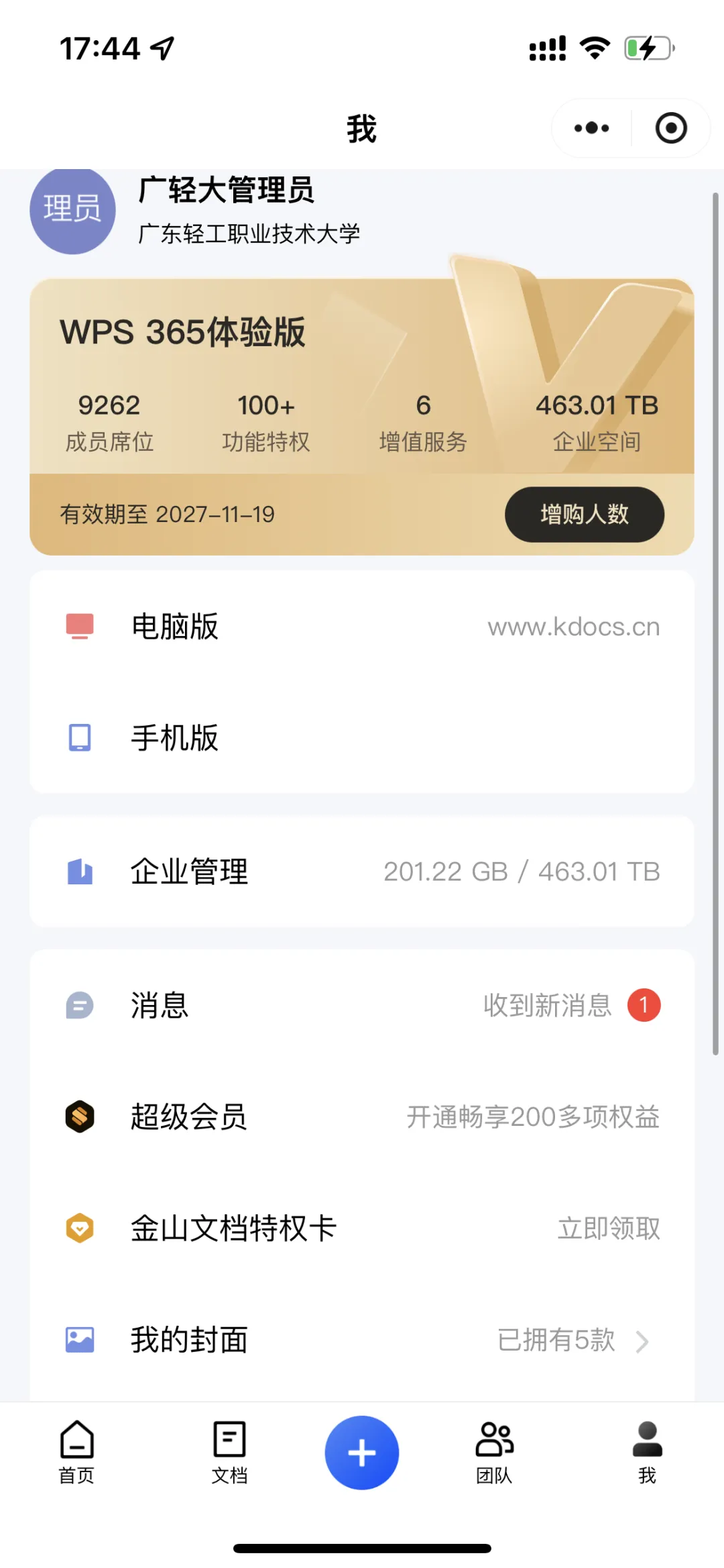 💡 移动端/金山文档小程序端头像下标出现“企”字小标,并在后缀出现“广东轻工职业技术大学”